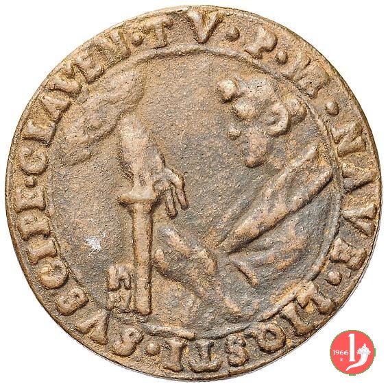 Verso: Stemma vuoto su chiavi decussate coronato da triregno