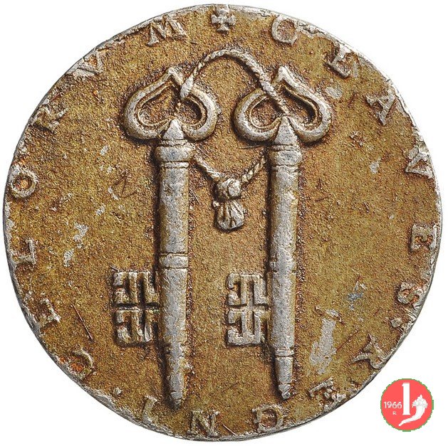 Verso: Stemma vuoto su chiavi decussate e coronato da triregno