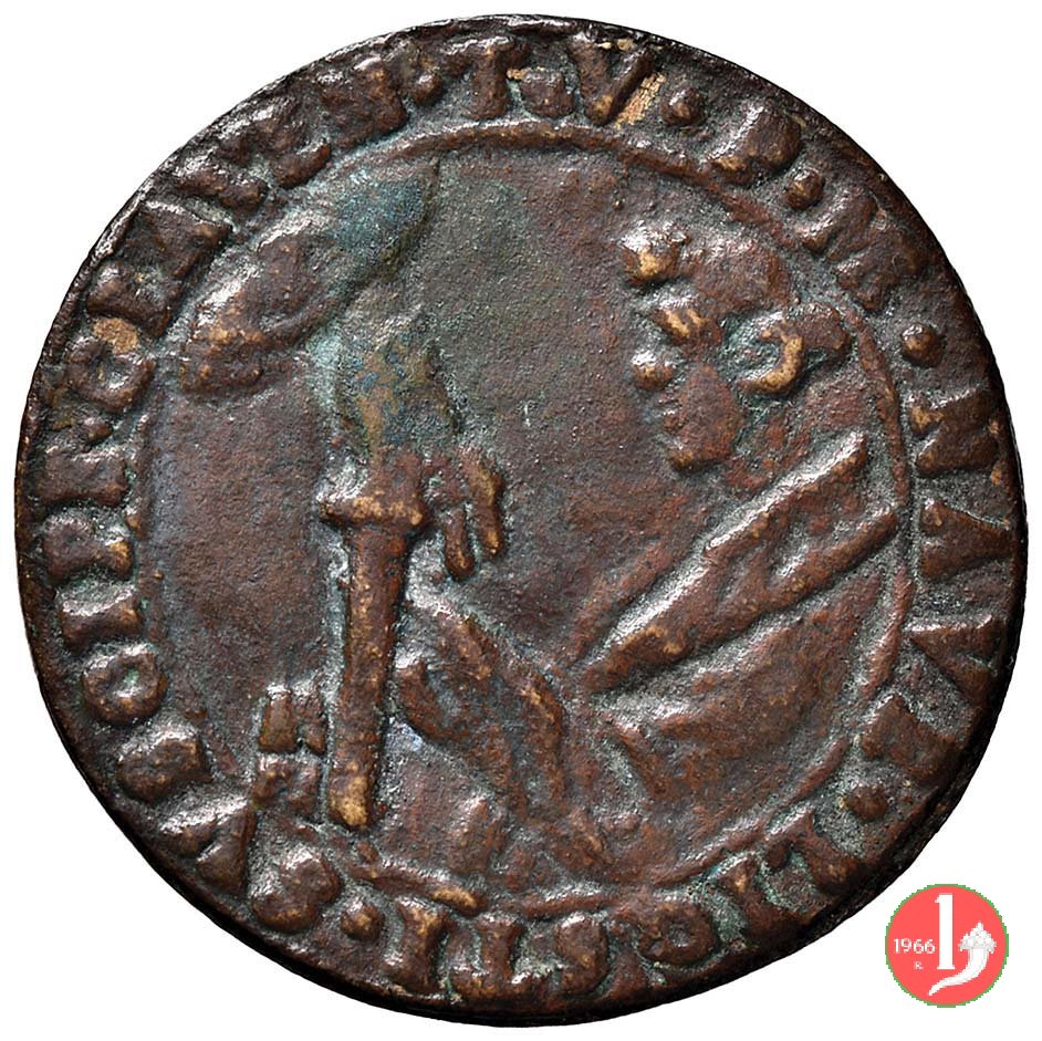 Verso: Stemma Papale (tripartito orizzontalmente: nastro; rosetta; onda su tre nastri obliqui) su chiavi decussate e coronato da triregno