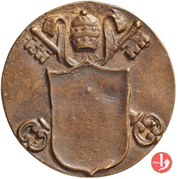 Verso: Stemma vuoto su chiavi decussate coronato da triregno
