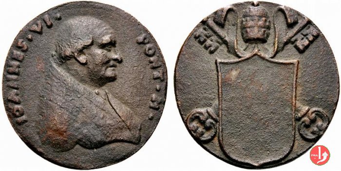 Verso: Stemma Papale vuoto su chiavi decussate coronato da triregno