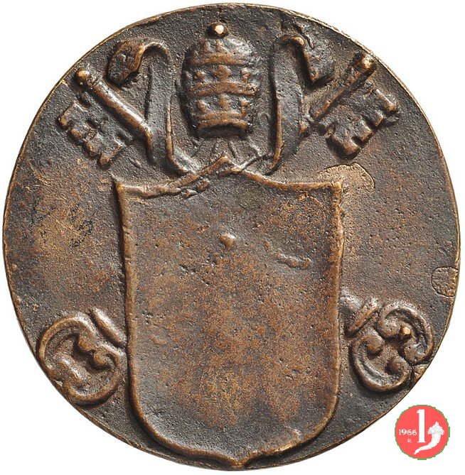 Verso: Stemma vuoto su chiavi decussate coronto da triregno