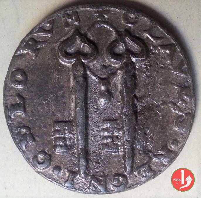 Verso: Stemma Papale vuoto su chiavi decussate e coronato da triregno