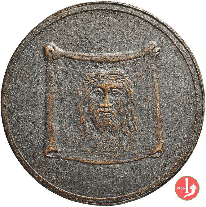 19 -Sudario della Veronica steso Dritto: • STEPHANVS • _ • II • PONT • MAX • busto a dx con mitra e piviale | |