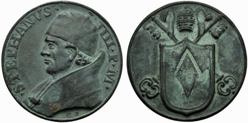 18 - Di restituzione - Stemma Papale Dritto: _ • STEPHANVS • _ • IIII • P • M • busto a sx con camauro e piviale sotto: G P | |