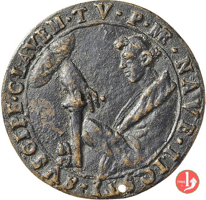 6 - San Pietro riceve le Chiavi Dritto: STEPANVS • _ III • P • M • busto a dx con mitra e piviale San Pietro riceve le chiavi da mano che esce da nube | |