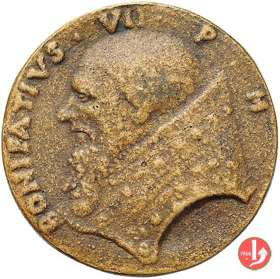 9- Di restituzione - Chiavi decussate Dritto: BONIFATIVS • VII • P • M busto a sx con piviale Chiavi decussate legate in basso da cordoncino | |