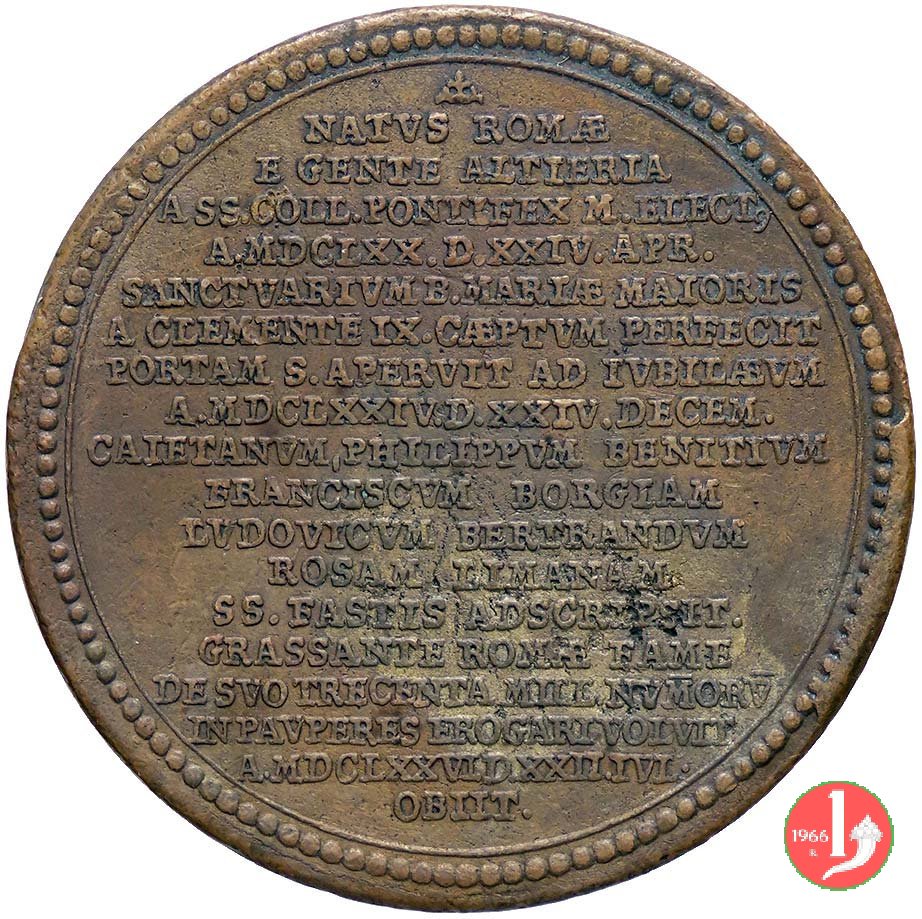 Numismatica → Medaglistica → Medaglie Papali → anni 1605-1800 → 239-Clemente X 1670-1676 → postume| Immagini | Descrizione |