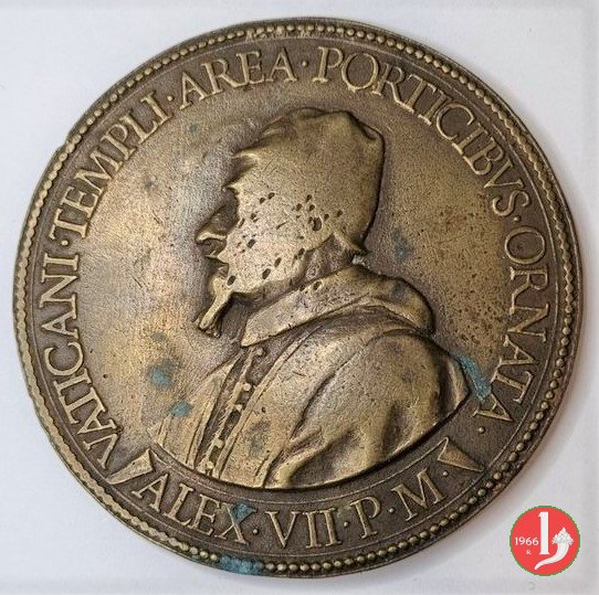 Dritto: VATICANI • TEMPLI • AREA • PORTICIBVS • ORNATA • = in cartglio ALEXAN • VII • P • M •