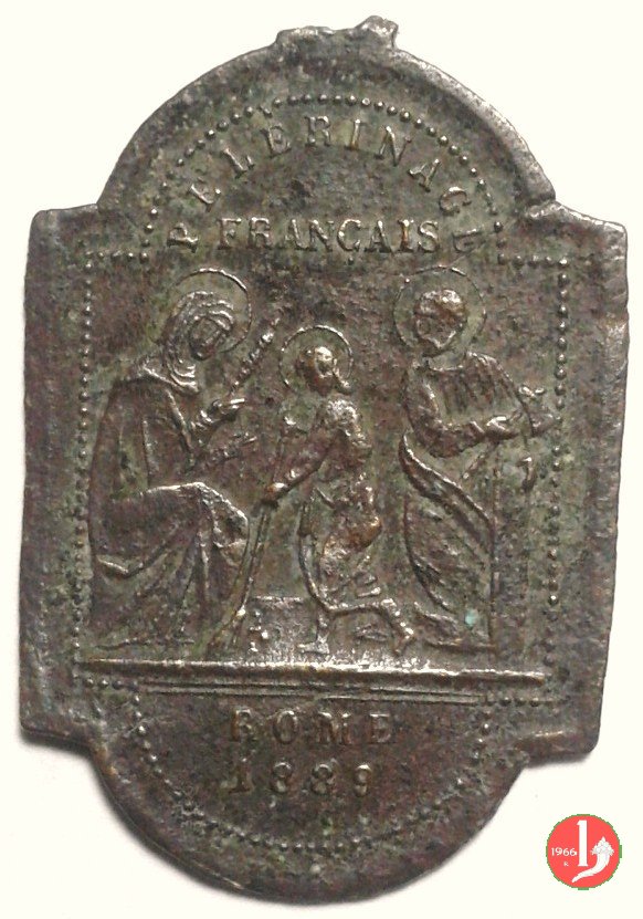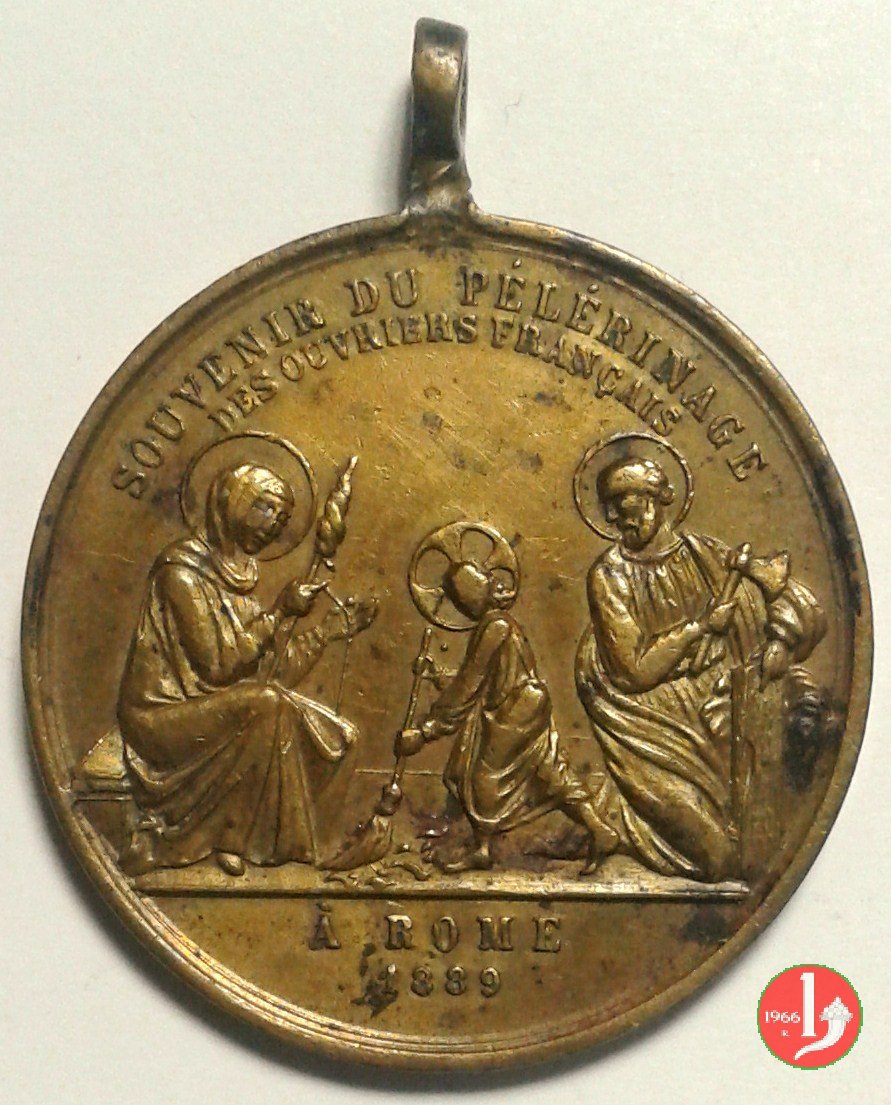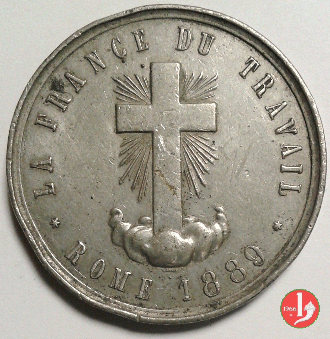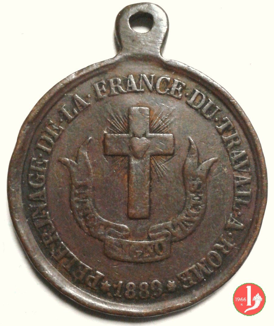 Verso: PELEGRINAGE • DE • LA • FRANCE • DU TRAVAIL • A • ROME = * 1889 *