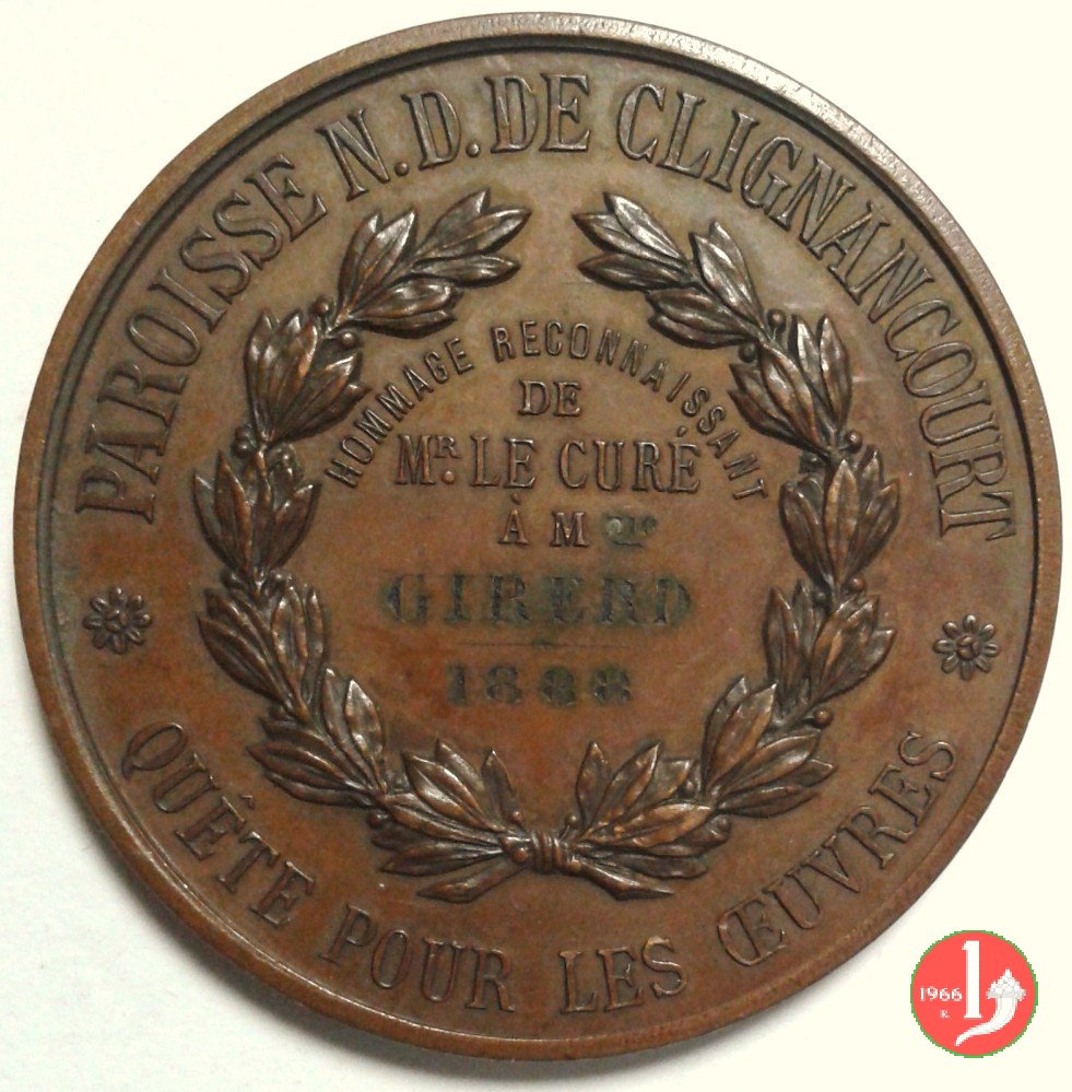 nel campo, entro rami d'alloro: HOMMAGE RECONNAISSANT = DE = M.r LE CURE' = A M. = GIREND = 1888