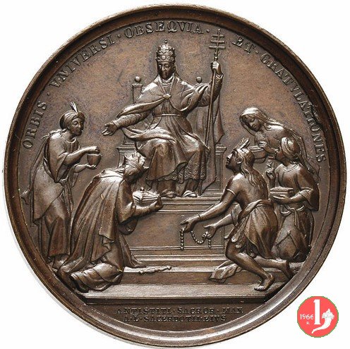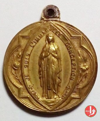 Verso: su nimbo a mandorla entro cornice quadrilobata e cuspidata: ✠ JE SUIS L'IMMACULEE CONCEPTION ✠