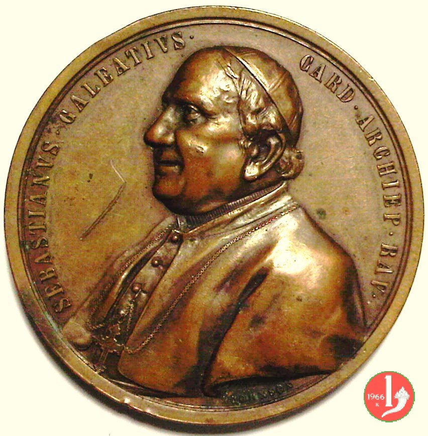 5-Onoranze al Card. Galeati Obverse: SEBASTIANVS • GALEATIVS • _ CARD • ARCHIEP • RAV • busto del Card. Galeati a sx con berretto, mozzetta e Croce pettorale sotto: JOHNSON | |