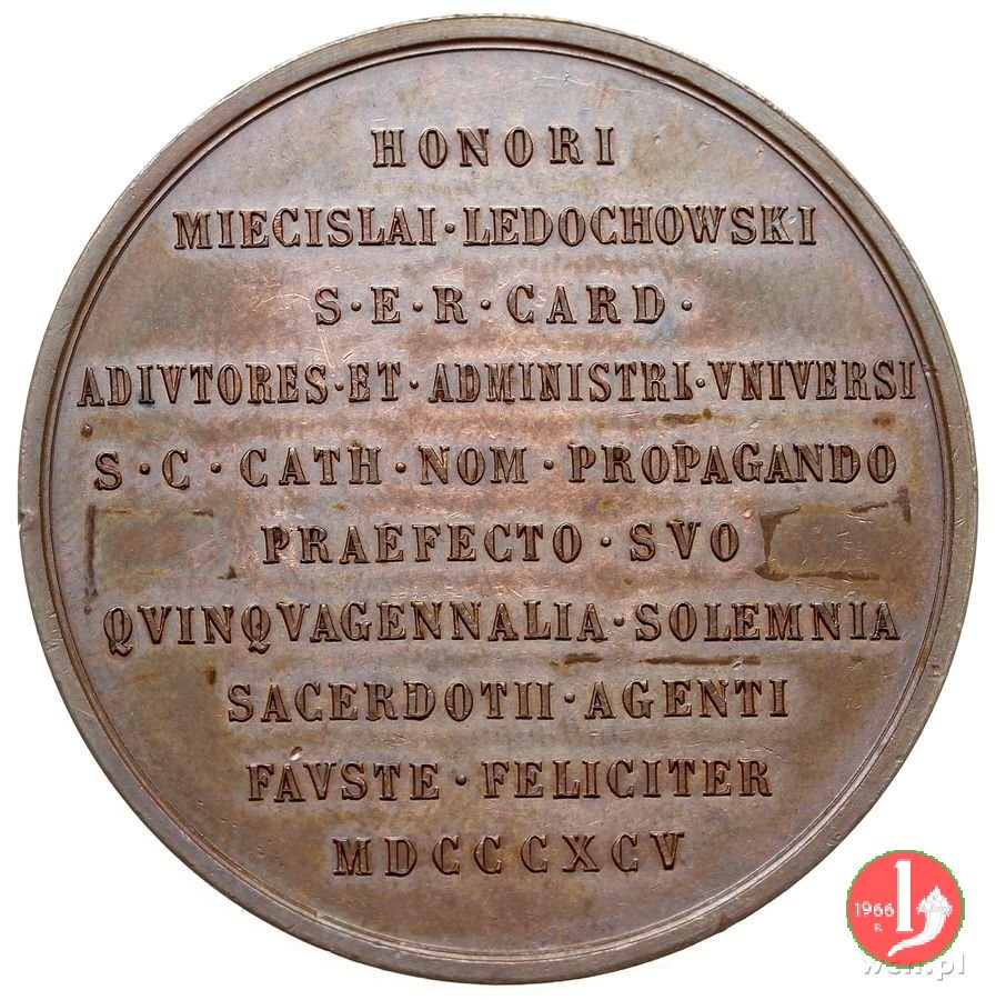 10-Benemerenti Acc. S. Tommaso d'Aquino 61mm Dritto: LEO • XIII • PONTIFEX • MAXIMVS = 1895 busto a sx con berretto, mozzetta e stola sotto: BIANCHI busto di San Tommaso a sx con berretto e saio | |