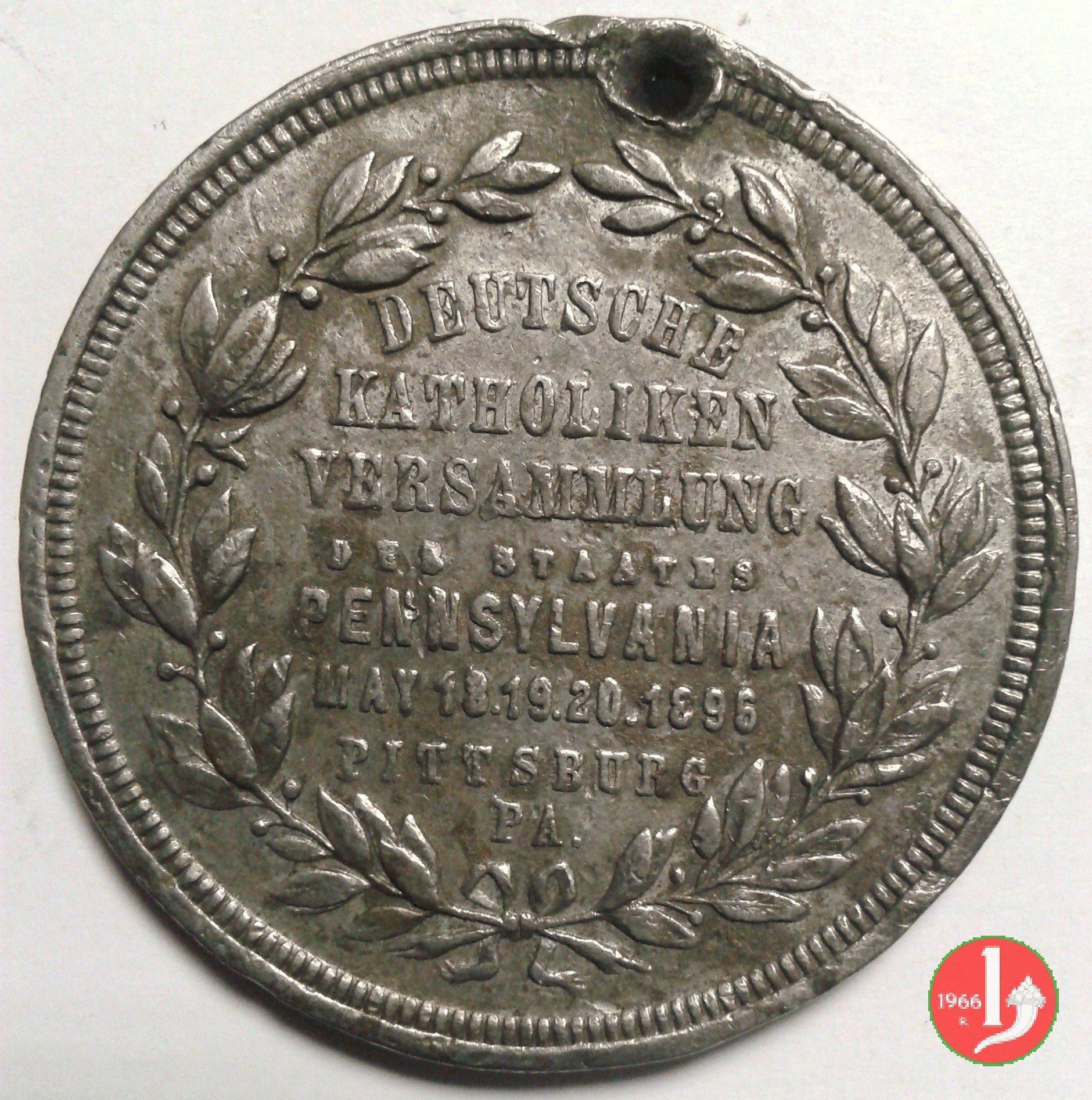 Verso: nel campo, tra rami d'alloro legati in basso da nastro: DEUTSCHE = KATOLIKEN = VERSAMMLUNG = DES STAATES = PENNSYLVANIA = MAY 18.19.20.1896 = PITTSBURG = PA.