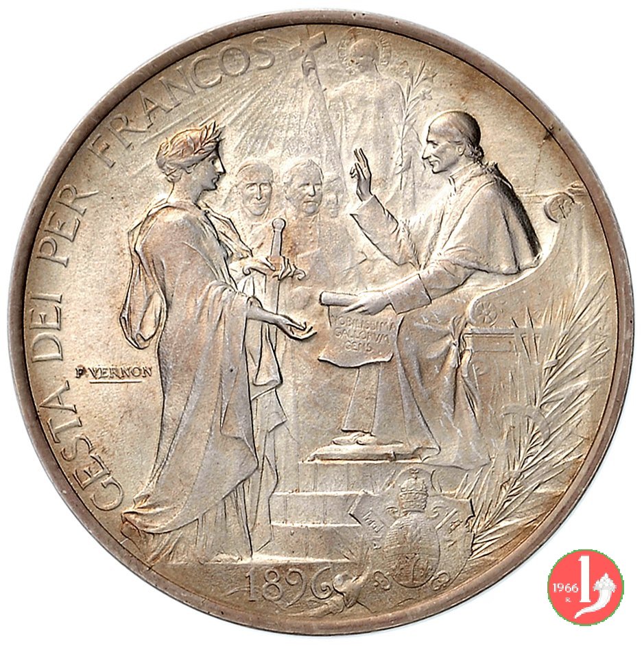Dritto: LEO XIII. PONTIFEX MAXIMUS. = * * MDCCCXCVI * *