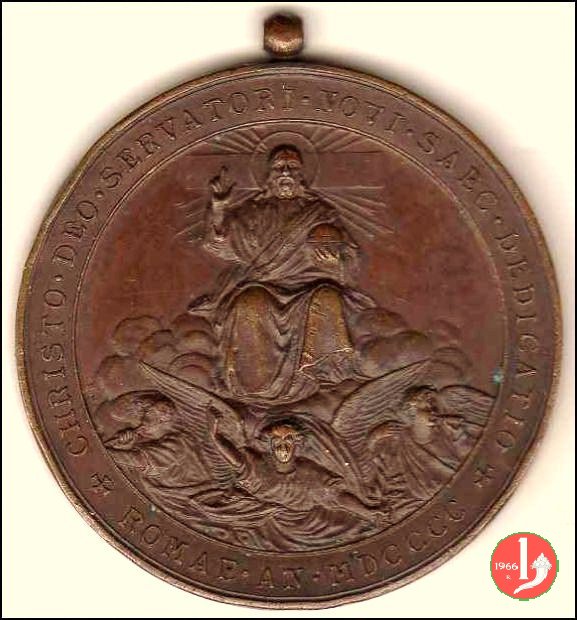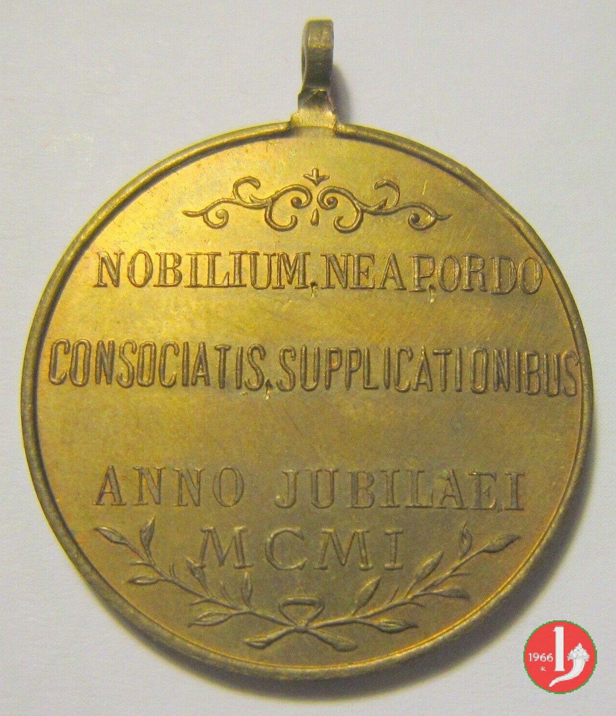 Verso: nel campo, tra fregio in alro e rami d'alloro decussati in basso: NOBILIUM • MEAP • ORDO = CONSOCIATIS • SUPLICATIONIBUS = ANNO JUBILAEI = MCMI