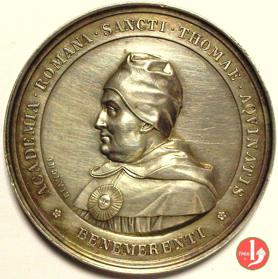 Verso: ACADEMIA = RELIGIONIS = CATHOLICAE = rami d'alloro intrecciati