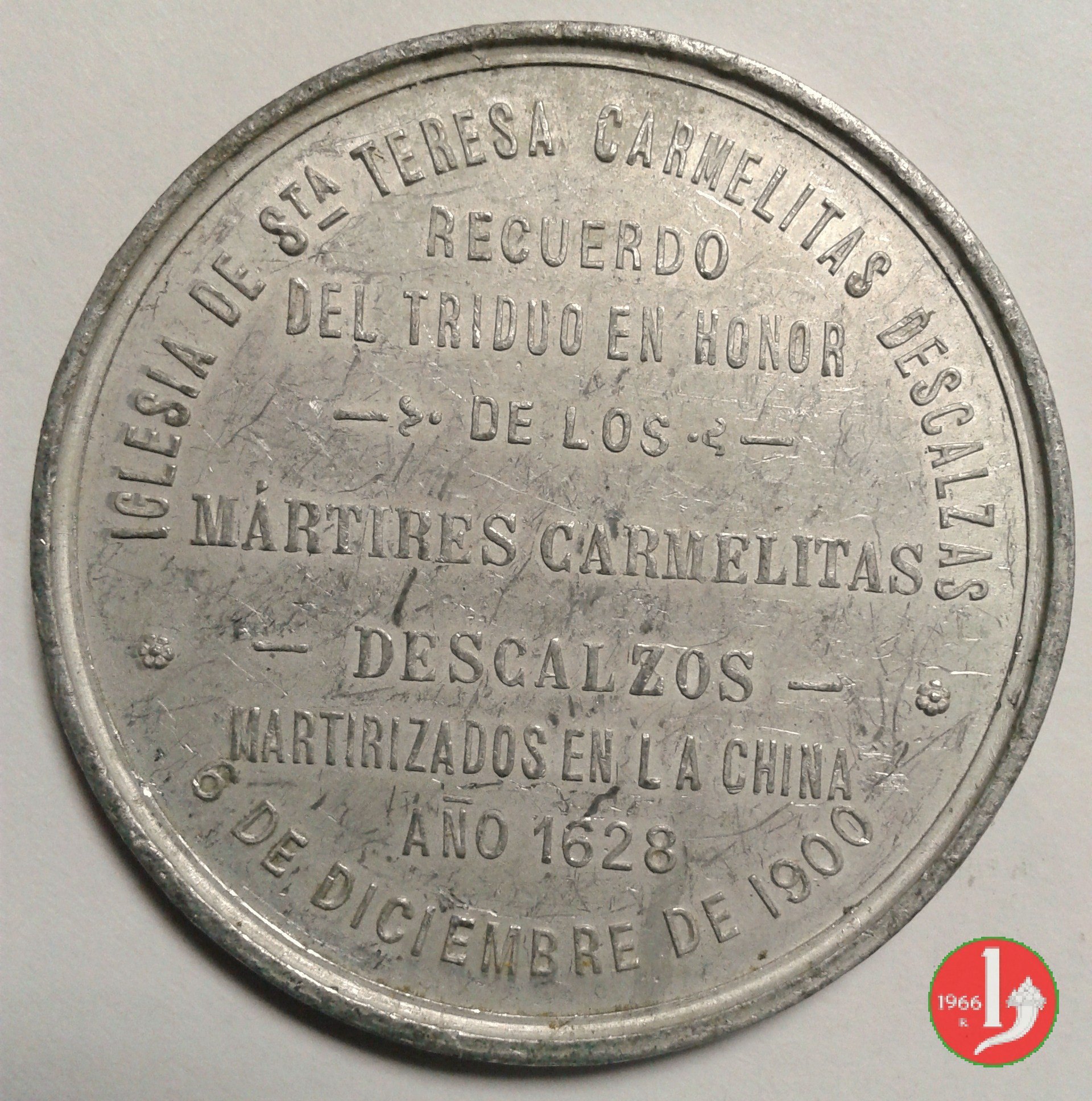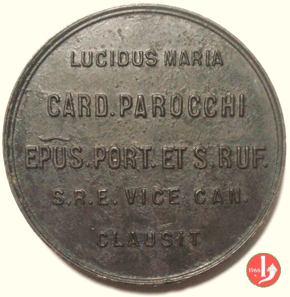 Verso: * = VINCENTIUS = EPISCOPUS • PRAENESTINUS = S • R • E • CARDINALIS • VANNUTELLI = SACROS • BASIL • LIB • ARCHIPR • = PORTAM • AUREAM = STATIS • DIEBUS = APERUIT • ET - CLAUSIT = AN • IUBILAEI • MCM = la Porta Santa