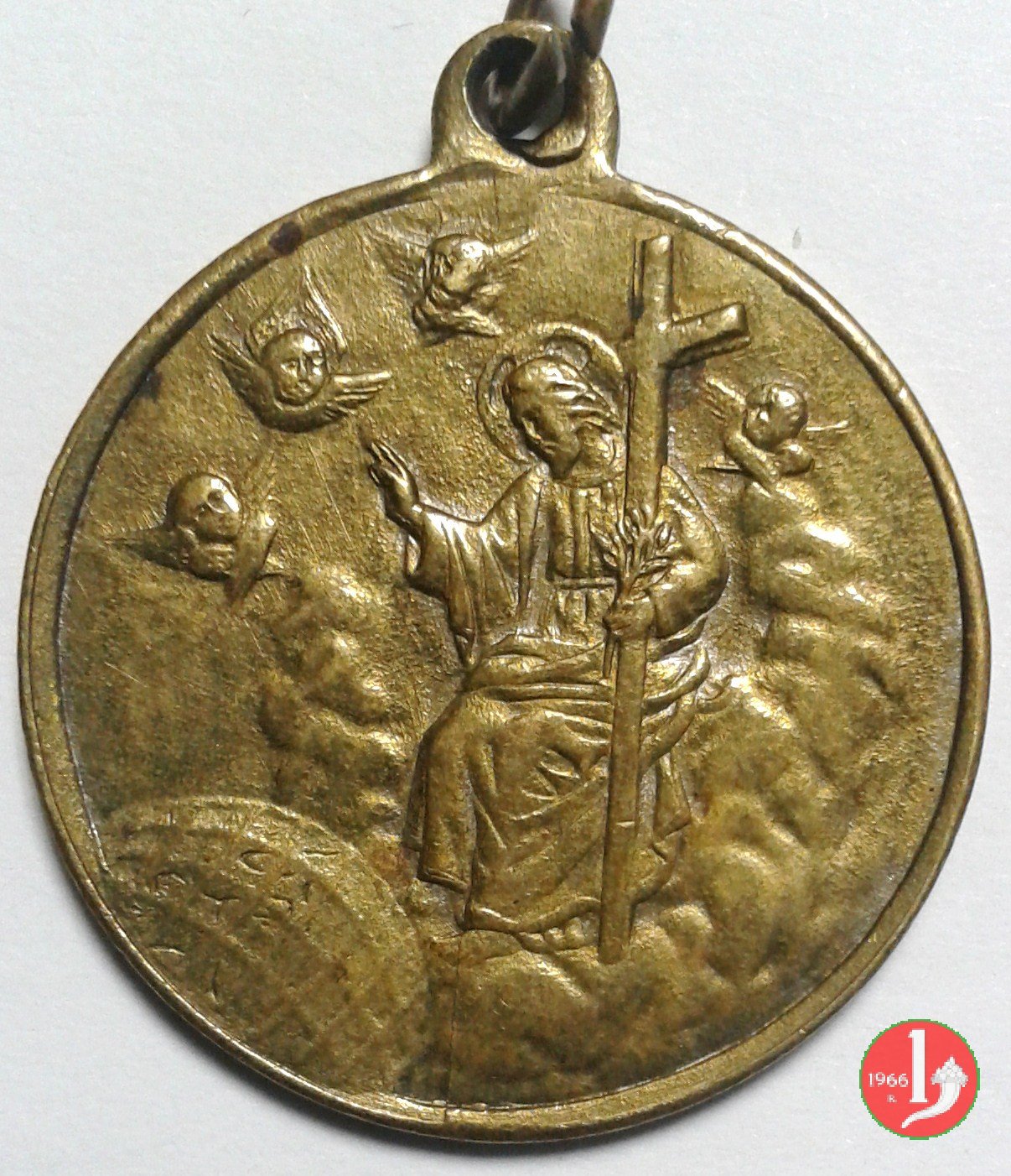 entro cerchio perlinato interrotto in basso: Cristo in piedi benedicente e nimbato, regge Croce astile