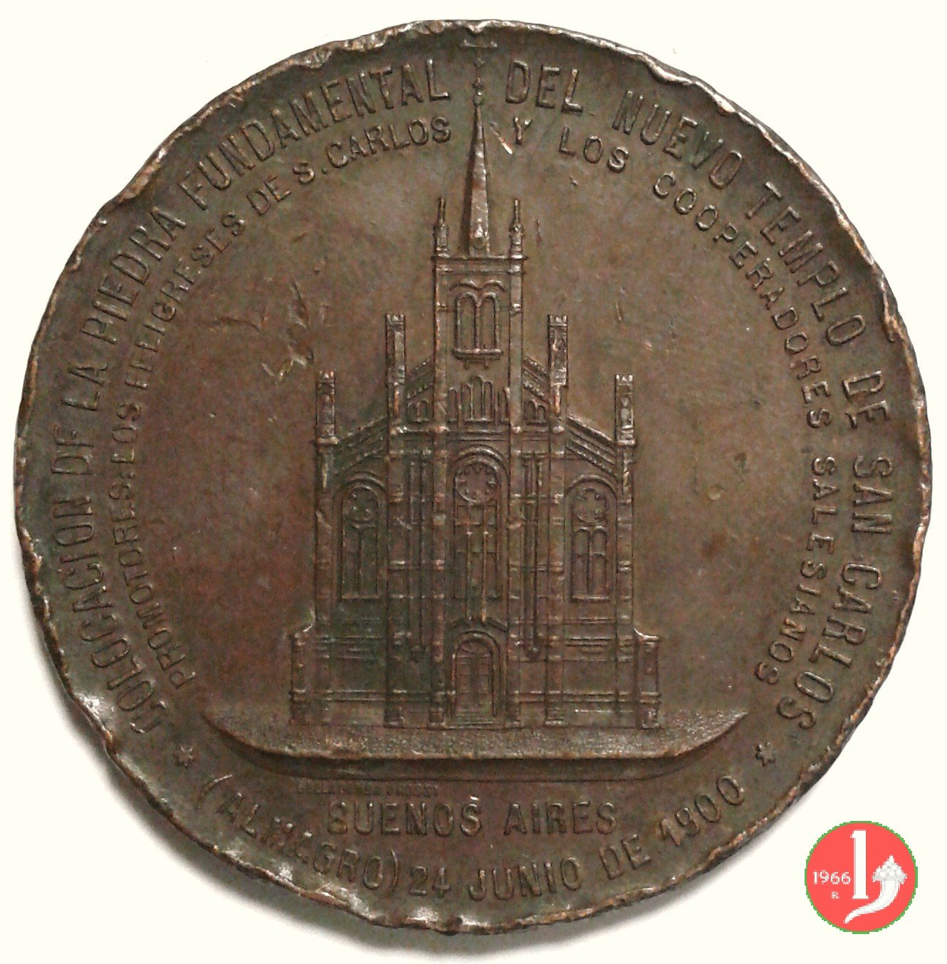 sul cerchio interno: PROMOTORES : LOS FELIGRESES DE S. CARLOS _ Y LOS COOPERATORES SALESIANOS