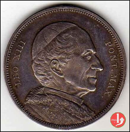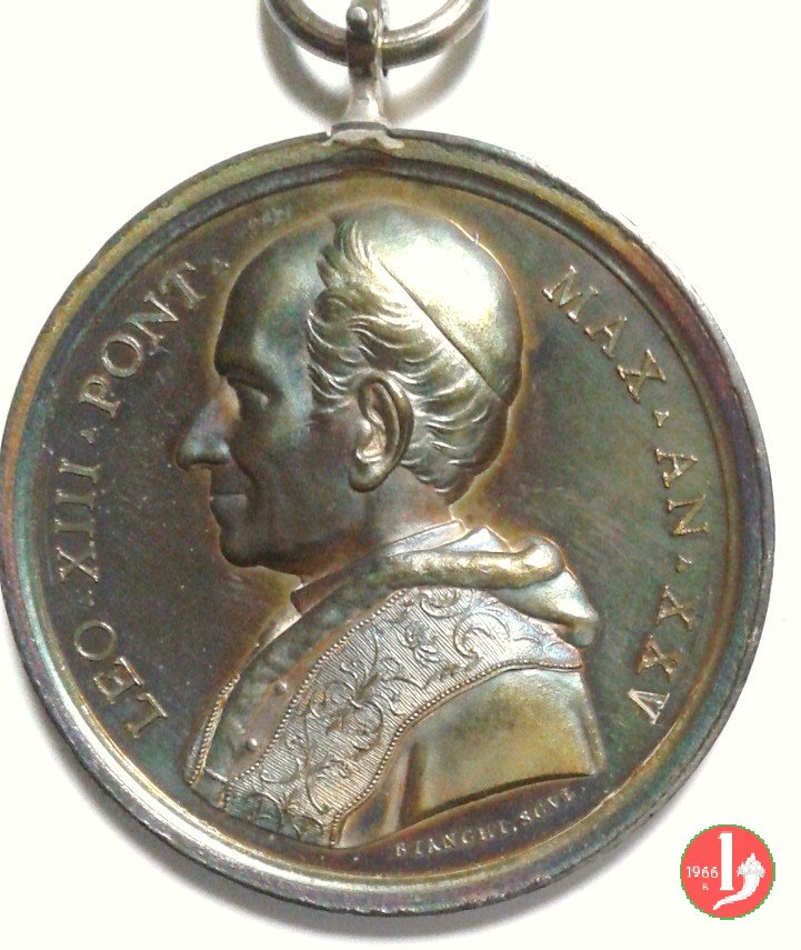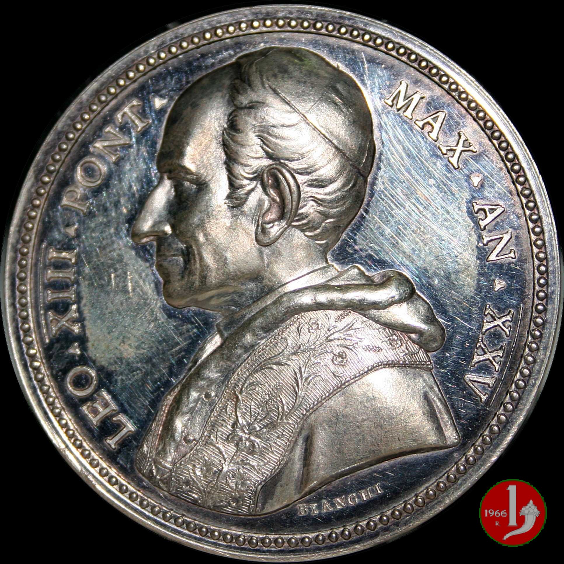 5-Benemerenti-berretto Dritto: LEO • XIII • PONT • _ MAX • AN • XXV busto con berretto, mozzetta e stola a sx sotto: BIANCHI | |