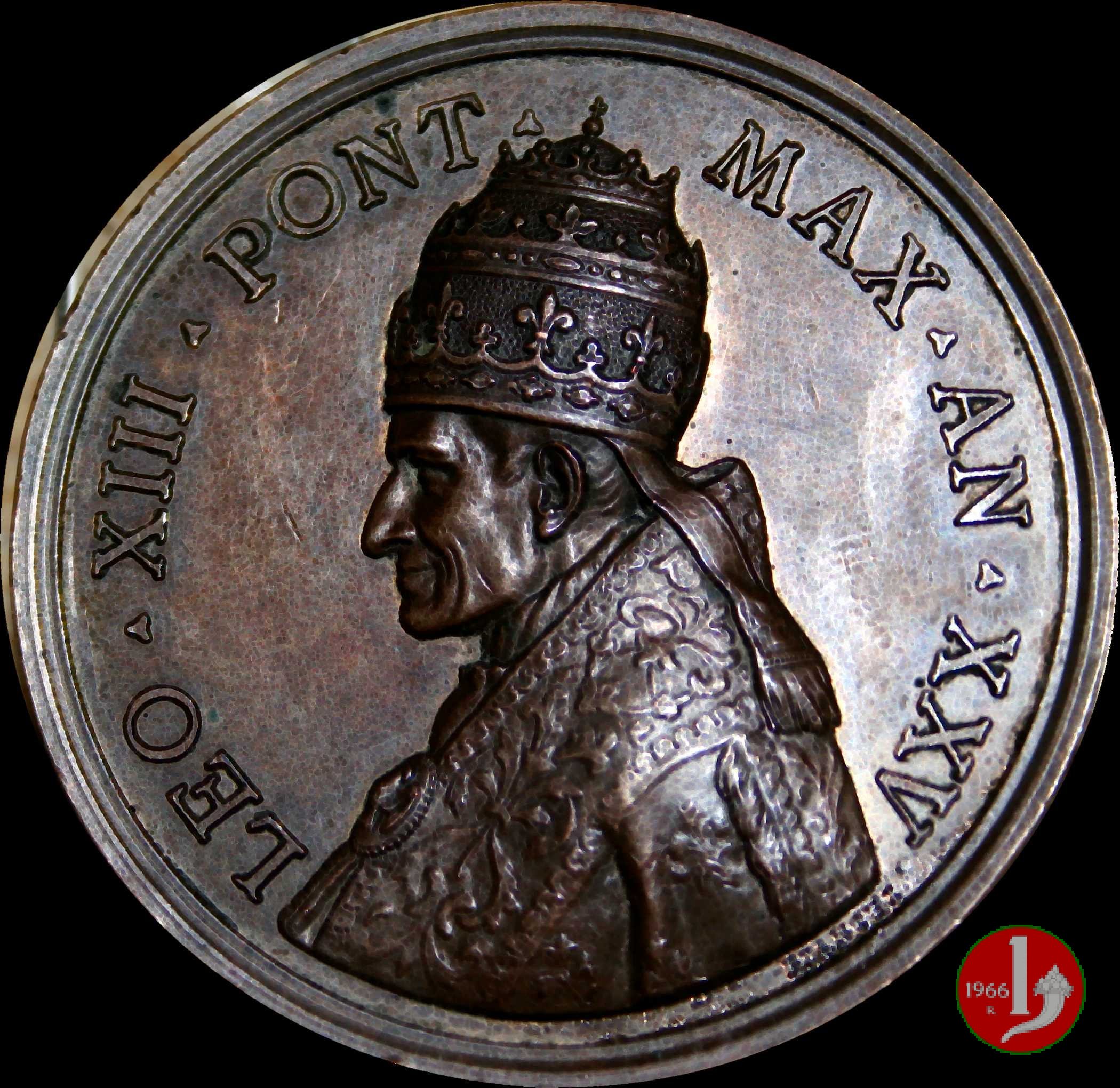 29-25° Pontificato - Operai di Terni 89mm Dritto: LEO • XIII _ PONT • MAX busto a sx con berretto, mozzetta e stola sotto, corsivo: CORRADO | |