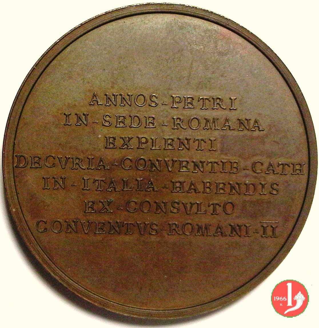 12- 25° di Pontificato -La chiesa Dritto: • LEONE XIII LUCE DI SAPIENZA CRISTIANA • = ✠ MCMII A • XXV DEL PONTIF. ✠ busto a sx con berretto, mozzetta e stola nel bordo interno dietro alla spalla: S • J • in esergo: LA CHIESA DI DIO VIVO E' = COLONNA E APPOGGIO = DELLA VERITA' | |