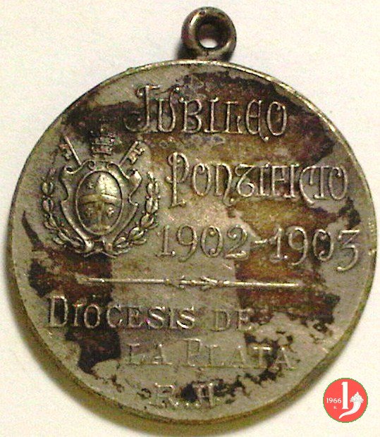 21-Giubileo Pontificio-Diocesi de La Plata Dritto: S. S. LEON _ XIII busto a sx con berretto, mozzetta d'ermellino e stola nel campo: JUBILEO = PONTIFICIO = 1902 - 1903 = fregio = DIOCESIS DE = LA PLATA = R.A. | |