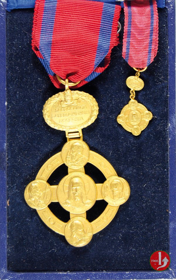 33- Croce Lateranense Dritto: entro le medaglie sui bracci: a dx San Giovanni Evangelista, a sx San Giovanni Battista, in alto San Pietro e in basso San Paolo; entro medaglia centrale il Redentore nimbato Verso: nel campo: SACRO = SANCTA = LATERANENSIS ECCLESIA= OMNIUM URBIS ET ORBIS ECCLESIARVM = MATER = ET = CAPVT | |