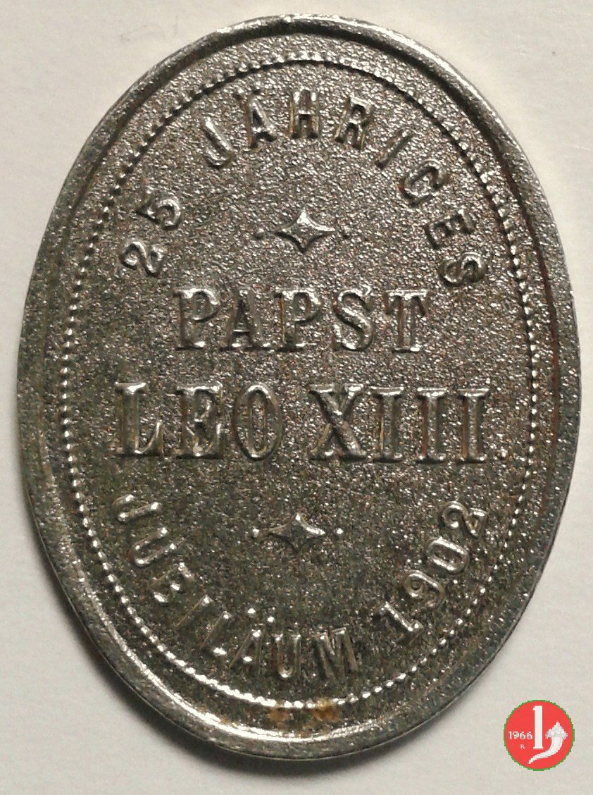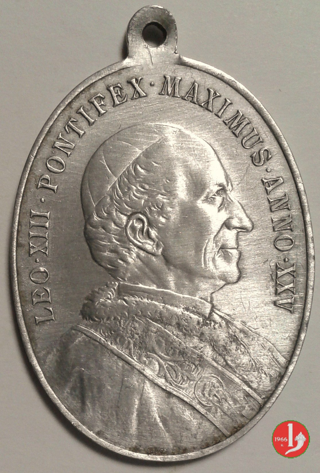 26- 25° di Pontificato Tedesca 48x36mm Dritto: LEO • XIII • PONTIFEX • MAXIMUS • ANNO • XXV busto a dx con berretto, mozzetta e stola sotto: LAUER | |