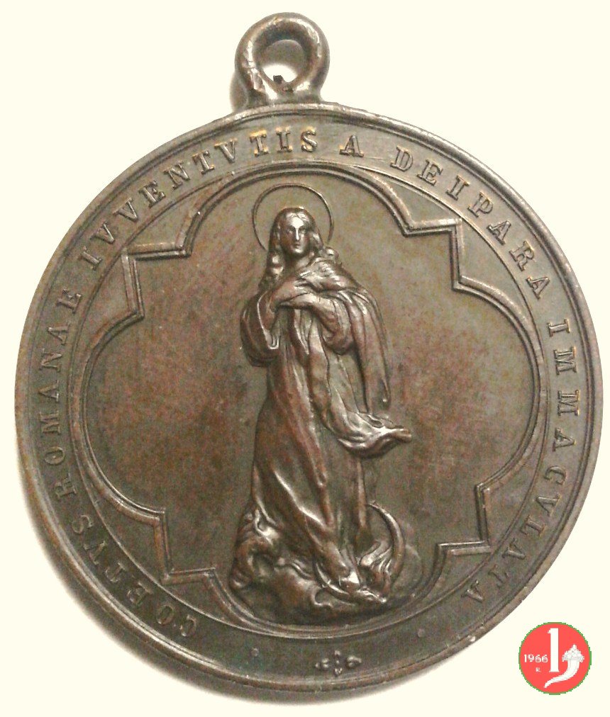 28- L'Immacolata Dritto: LEO • XIII • P • M • SACRI • PRINCIPATVS • ANNO • XXV * busto a sx con berretto, mozzetta d'ermellino e stola entro cornice quadrilobata la B.V. in piedi su nubi e crescente lunare | |
