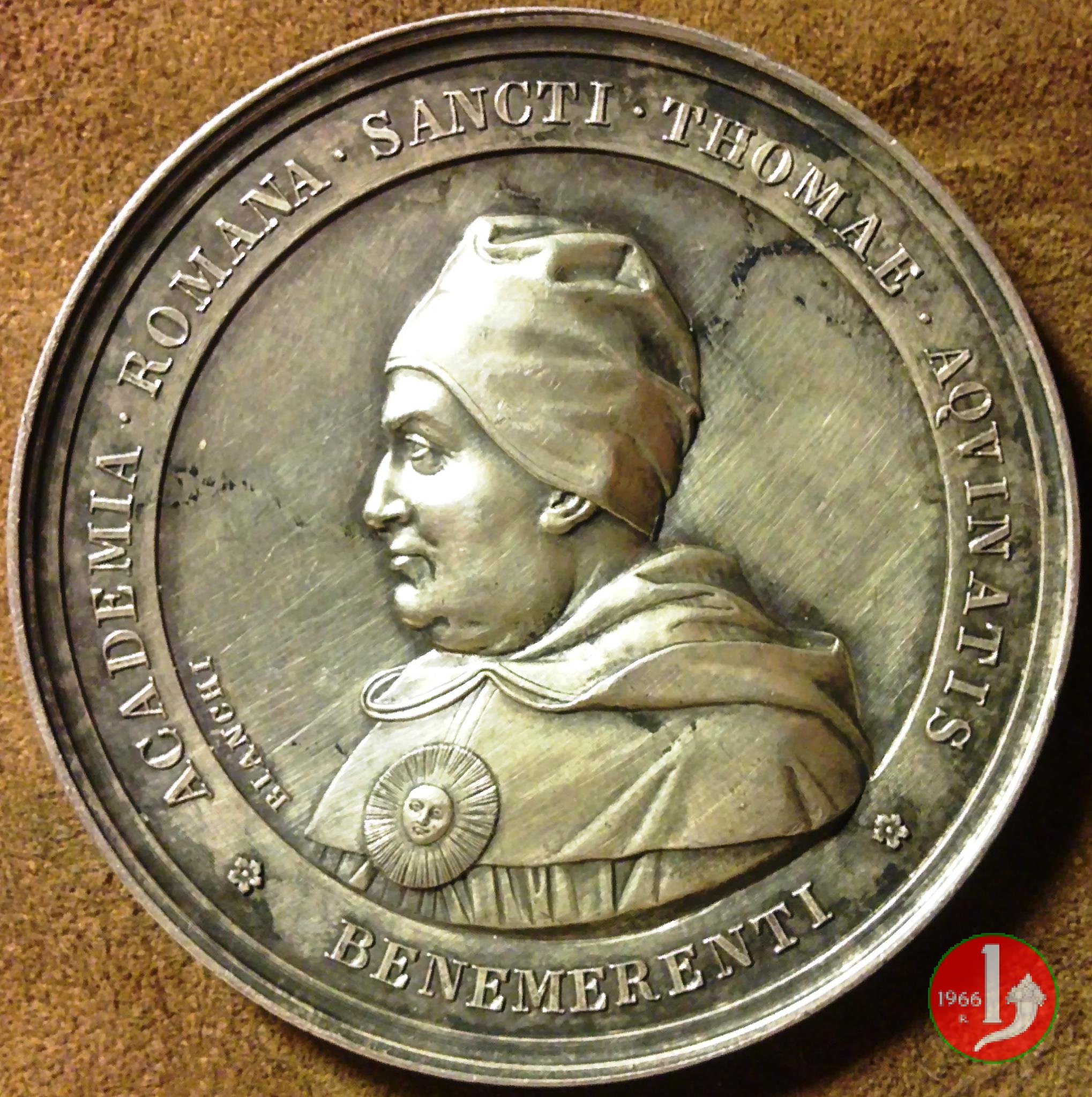 36-Benemerenti Acc. S. Tommaso d'Aquino 44mm Dritto: LEO • XIII _ PONT • MAX • busto a sx con berretto, mozzetta e stola sotto incuso: 1902 busto a sx di san Tommaso con saio e berretto sul contorno interno a sx: BIANCHI | |