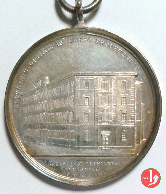 35-Collegio Leonino di Anagni - A. XXV Dritto: LEO • XIII • PONT • _ MAX • AN • XXV busto con berretto, mozzetta e stola a sx sotto: BIANCHI Vista prospettica del nuovo Collegio di Anagni. in esergo: COLLEGIVM • LEONIANVM = ANAGNIAE = I • OLIVIERI • ARCH • | |