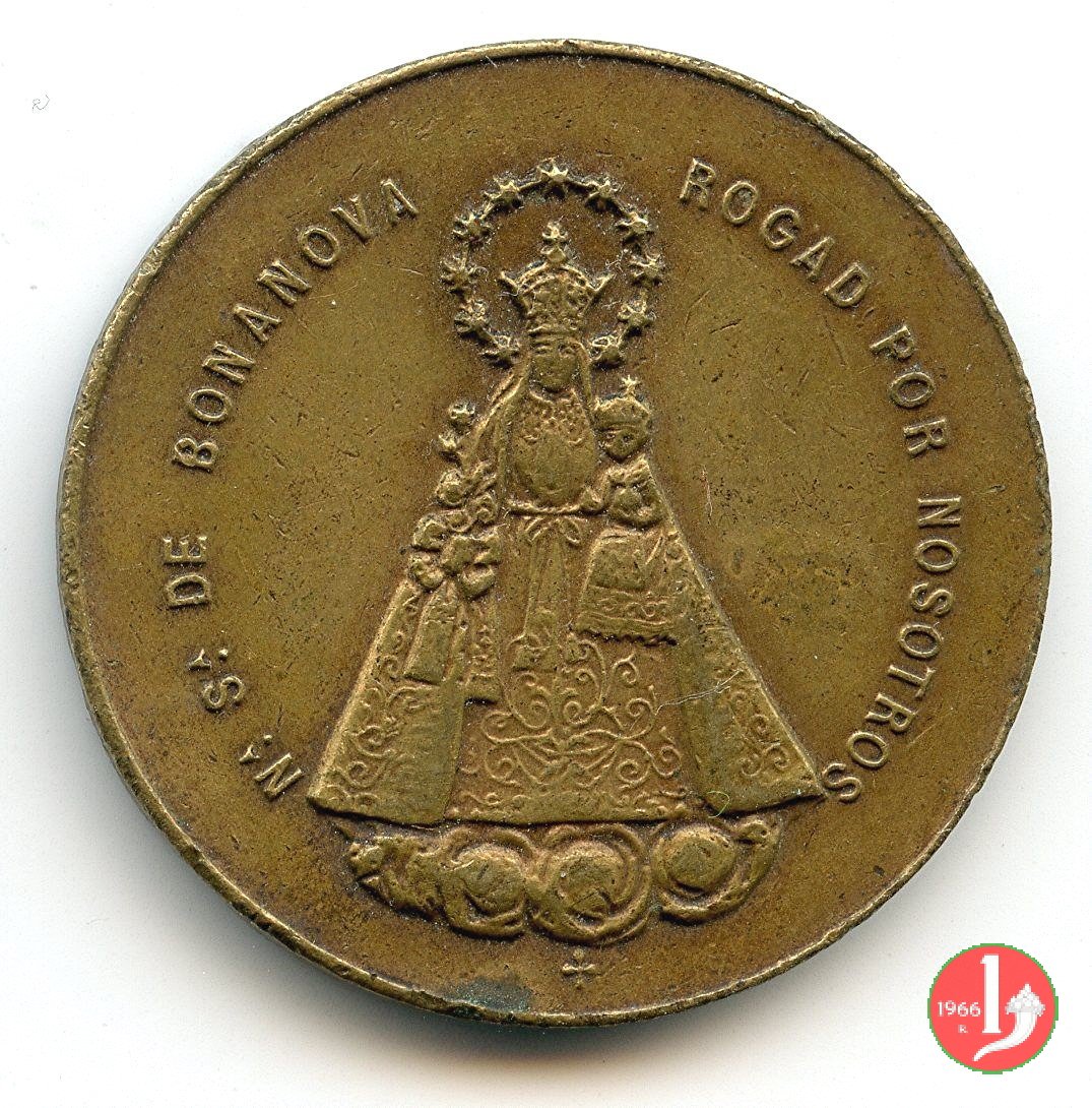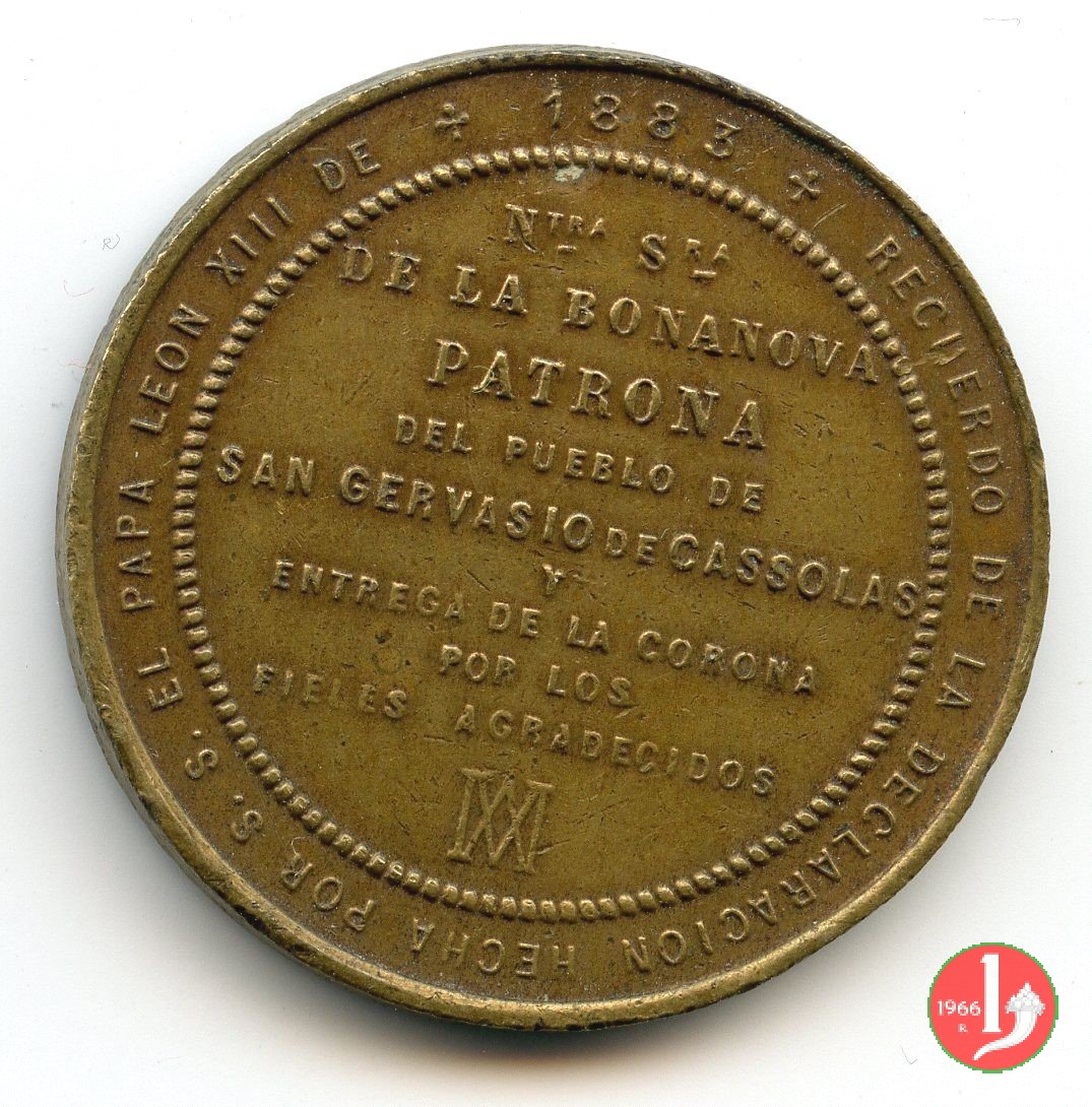 nel campo, entro cerchio perlinato: Ntra Sra = DE LA BONANOVA = PATRONA = DEL PUEBLO DE = SAN GERVASIO DE CASSOLAS = Y = ENTRECA DE LA CORONA = POR LOS = FIELES AGRADECIDOS = AM (monogramma)