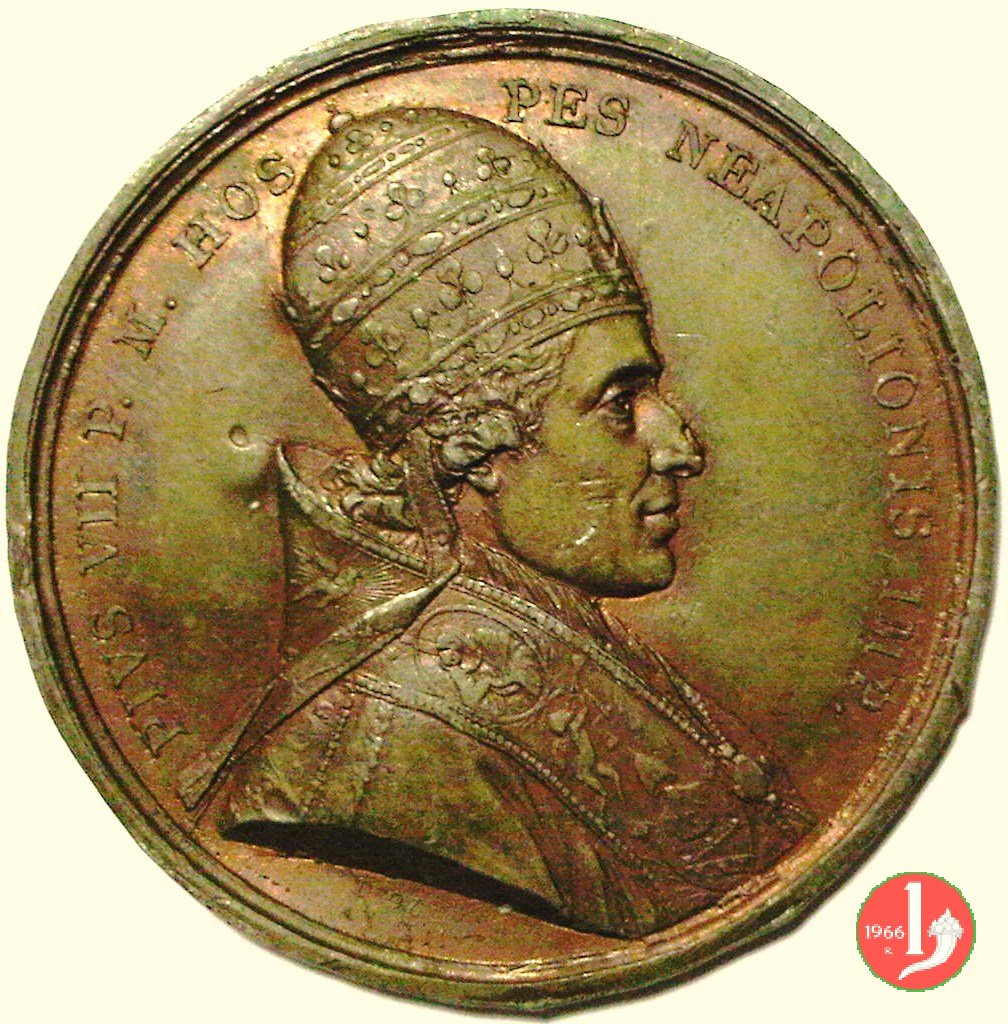 Uniface - A . V Dritto: PIVS VII P • M • HOS _ PES NEAPOLIONIS IMP • busto a dx con triregno e piviale sotto: DENON DIREX • DROZ F • | |