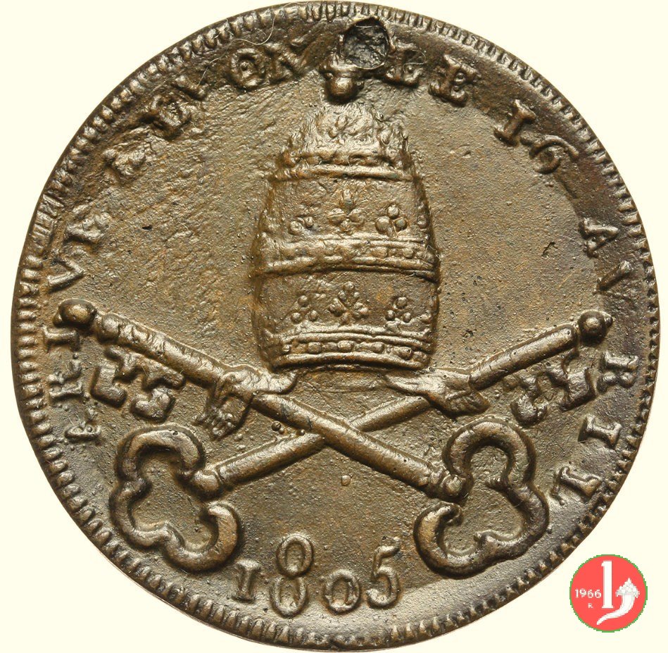 Arrivo a Lione -Be67 Dritto: PIE VII _ PAPE busto con berretto, mozzetta e stola a dx triregno su chiavi decussate sotto: 1805 | |