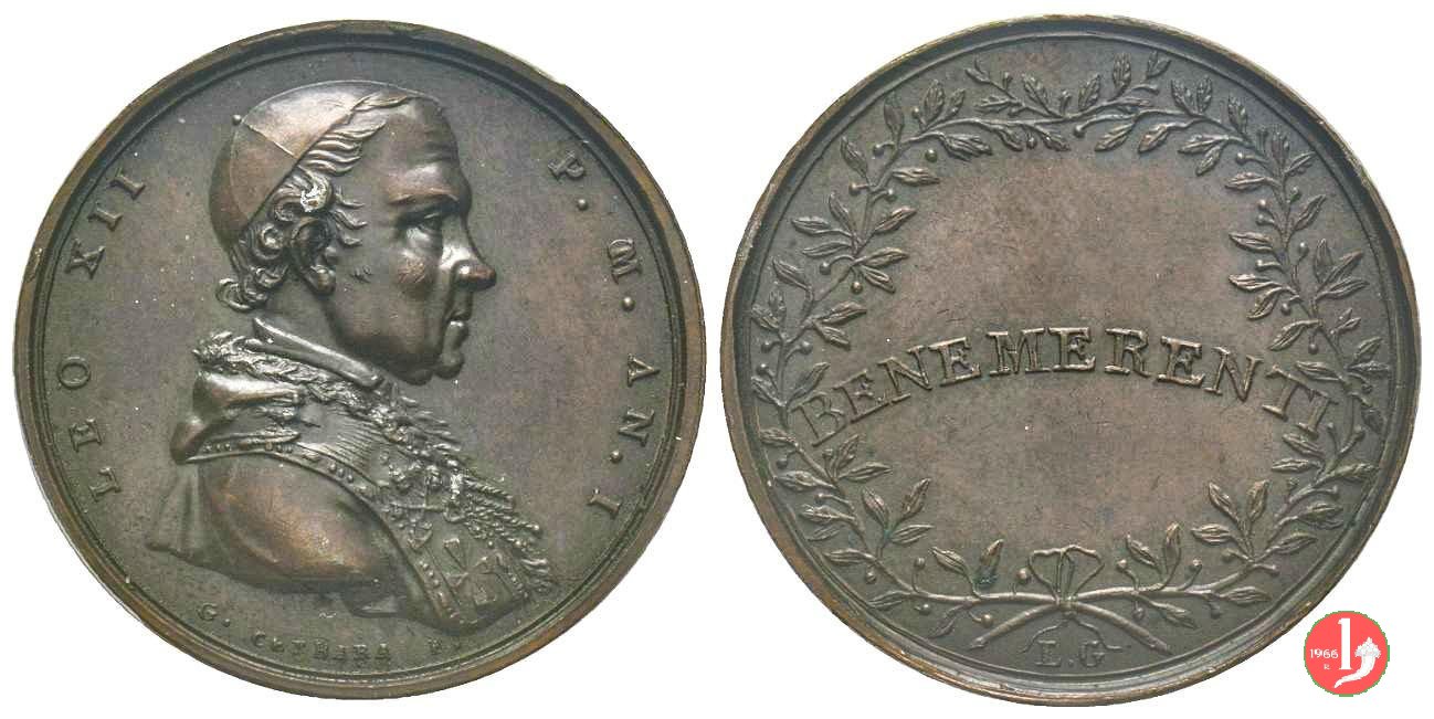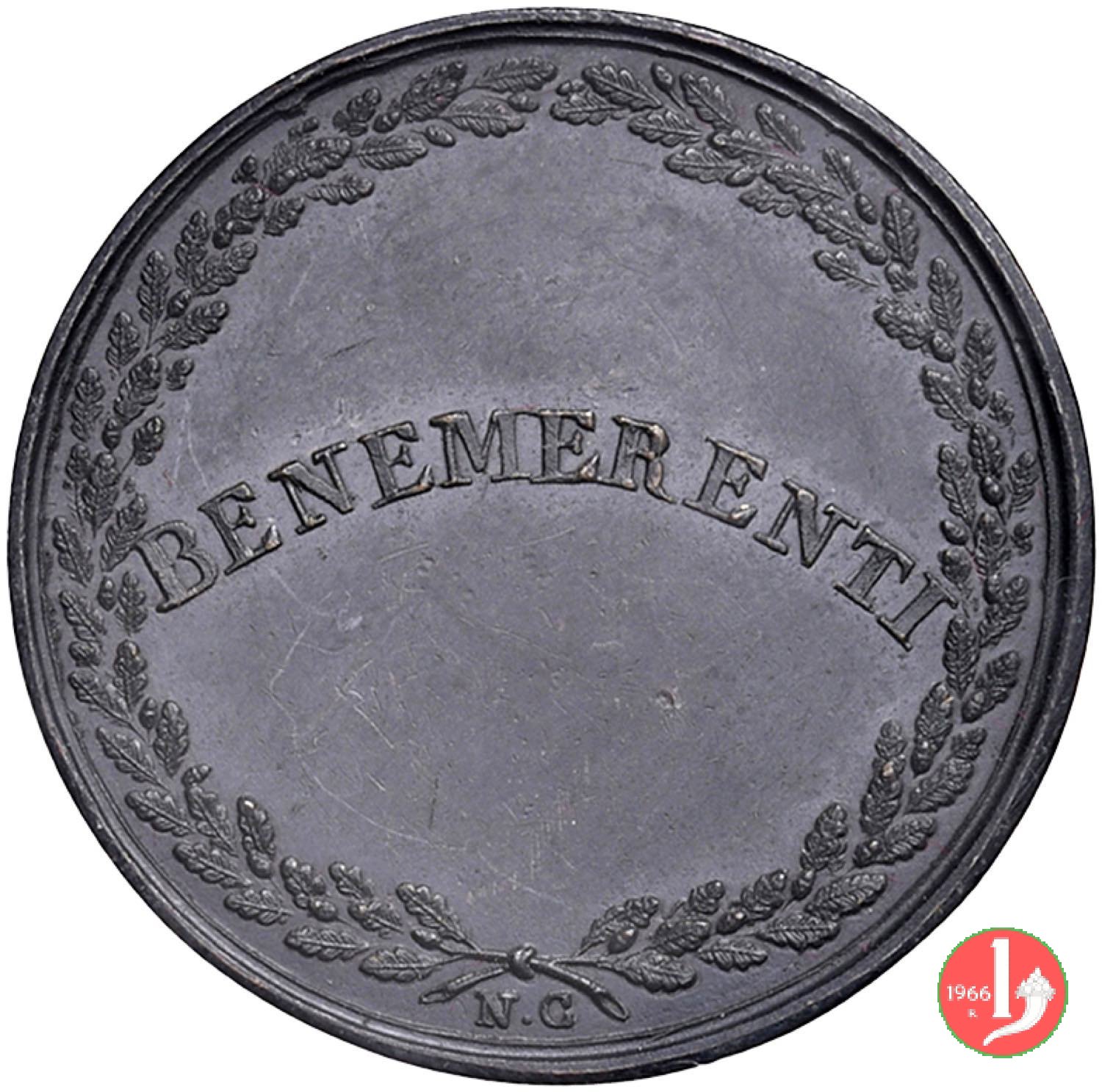 Verso: in corona di alloro legata da nastro in basso, nel campo in semicerchio: BENEMERENTI