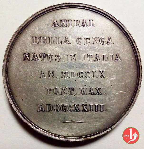 Verso: nel campo: ANIBAL = DELLA GENGA = NATUS IN ITALIA = AN. MDCCLX. = PONT. MAX. MDCCCXXIII. = fregio
