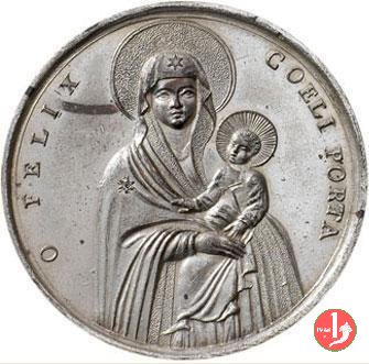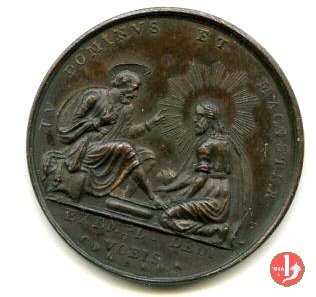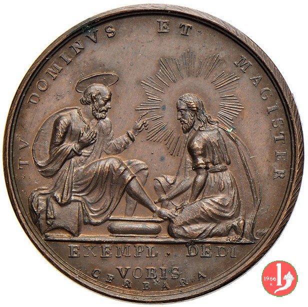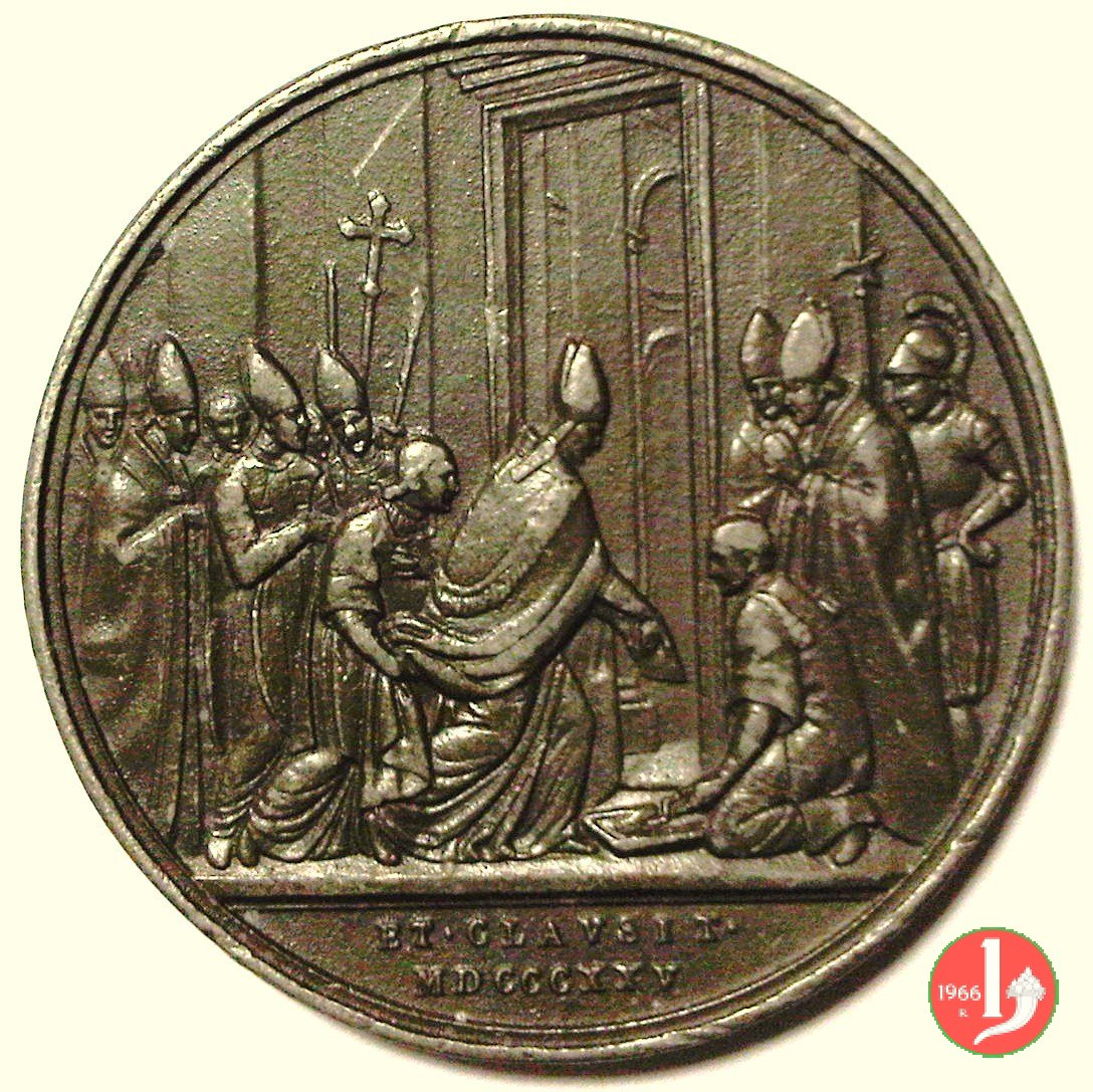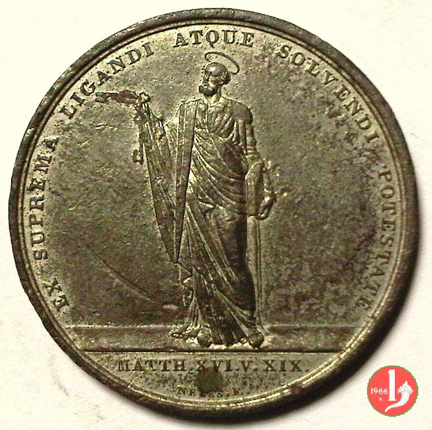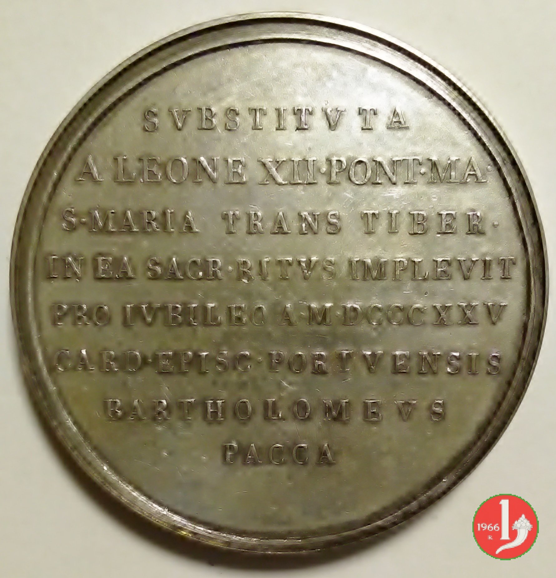 Verso: nel campo: SVBSTITVTA = A LEONE XII • PONT • MA • = S • MARIA TRANS TIBER • = IN EA SACR • RITVS IMPLEVIT = PRO IVBILEO A • M • DCCCXXV = CARD • EPISC • PORTVENSIS = BARTHOLOMEVS = PACCA