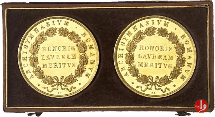 Verso: in corona di alloro: ACADEMIIS = ARCHIGYMNASII = ROMANI