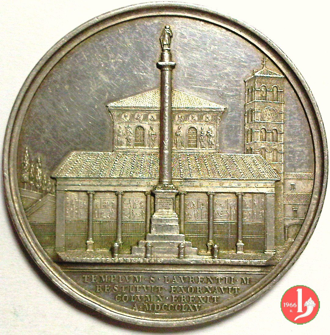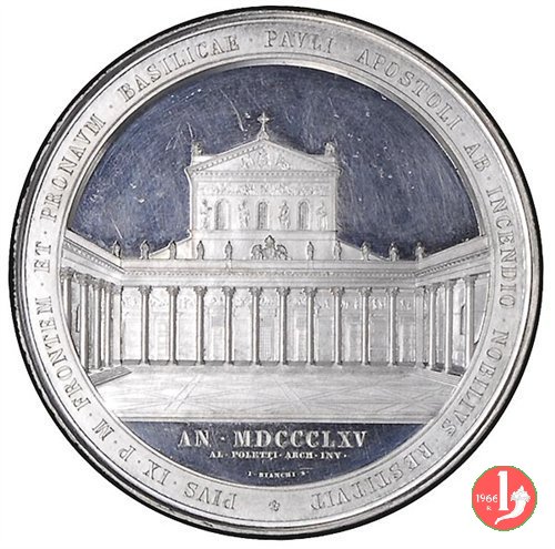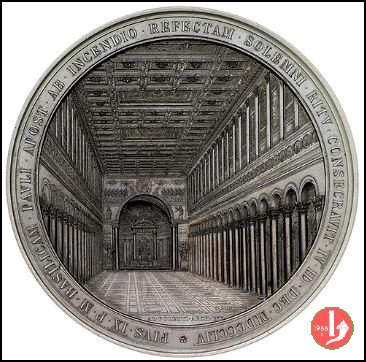 Verso: * PIVS • IX • P • M • BASILICAM • PAVLI • APOST • AB • INCENDIO • REFECTAM • SOLEMNI • RITV • CONSECRAVIT • IV • ID • DEC • MDCCCLIV