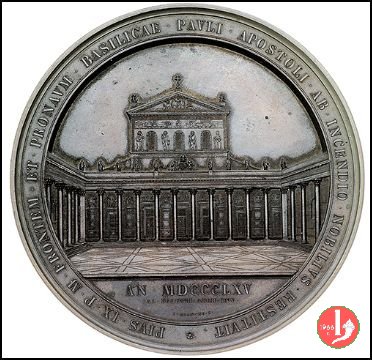 Verso: * PIVS • IX • P • M • FRONTEM • ET • PRONAVM • BASILICAE • PAVLI • APOSTOLI • AB • INCENDIO • NOBILIVS • RESTITVIT •