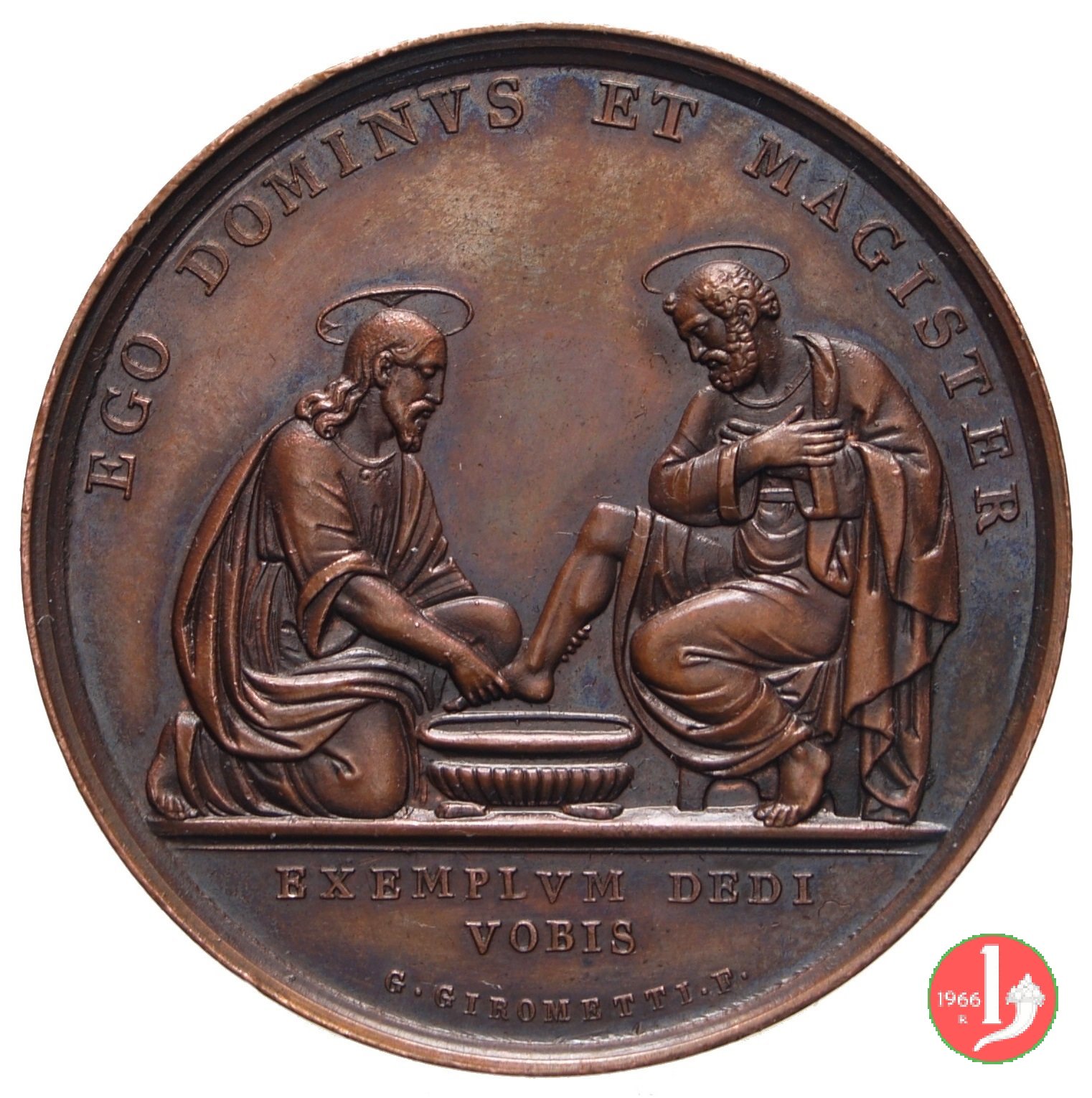 lavanda dei piedi - A . VII -B13 Dritto: PIVS • IX • PONT • _ MAX • ANNO • VII busto con mozzetta e stola a dx sotto: G • CERBARA F • Gesú a sx lava i piedi a San Pietro in esergo: EXEMPLVM DEDI = VOBIS = G • GIROMETTI F • | |