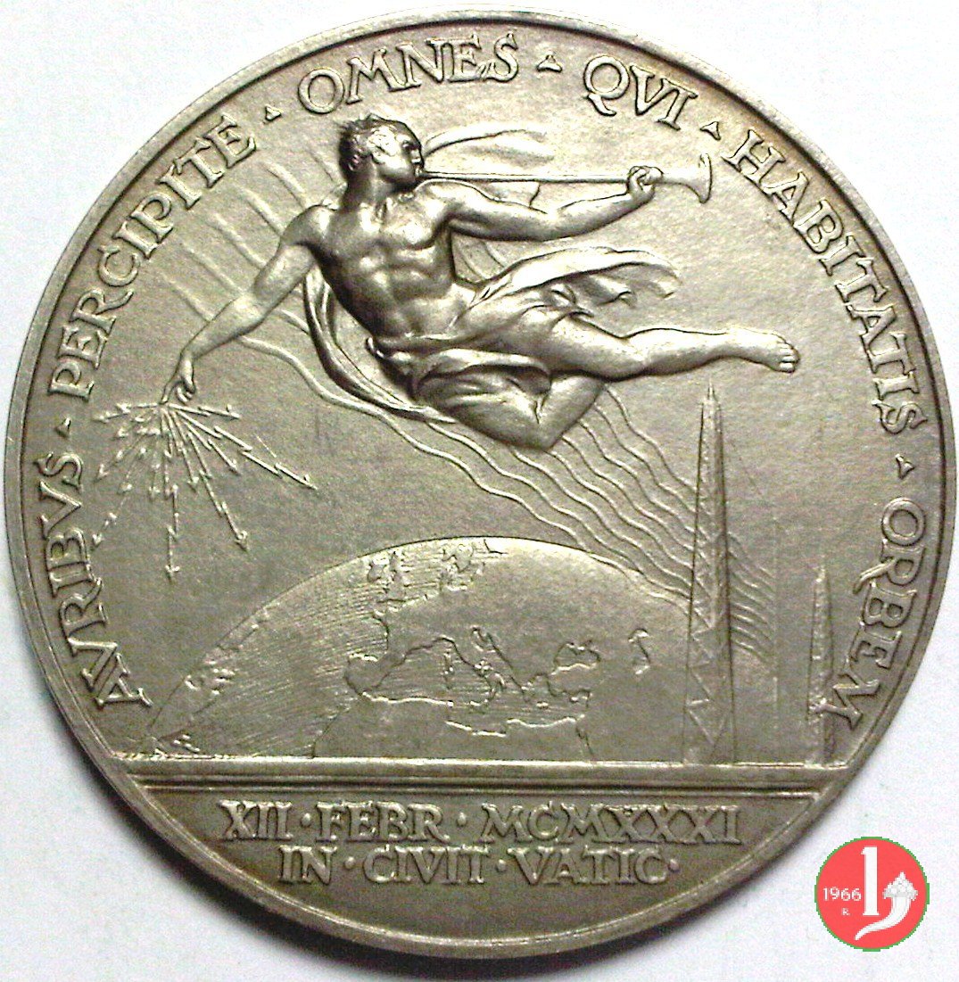 Verso: PIO XI • P • M • VICT • EMM • III • REGE • ANNVENTE • CLERO • POPVLOQVE • OBSEQVENTIBVS = - MCMXXXI -