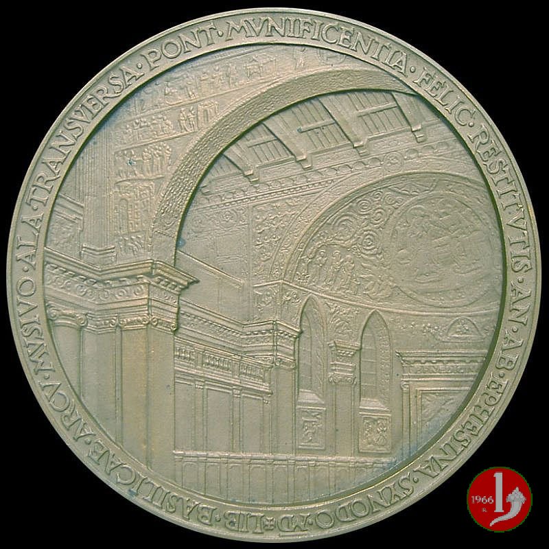 Verso: LIB • BASILICAE • ARCV • MVSIVO • ALA • TRANSEVERSA • PONT • MVNIFICENTIA • FELIC • RESTITVTIS • AN • AB • EPHESINA • SYNODO • MD •