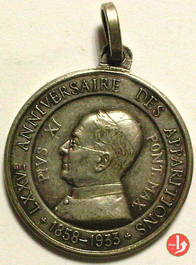 Dritto: LXXV - ANNIVERSAIRE DES APPARITIONS ✠ 1858-1933 ✠