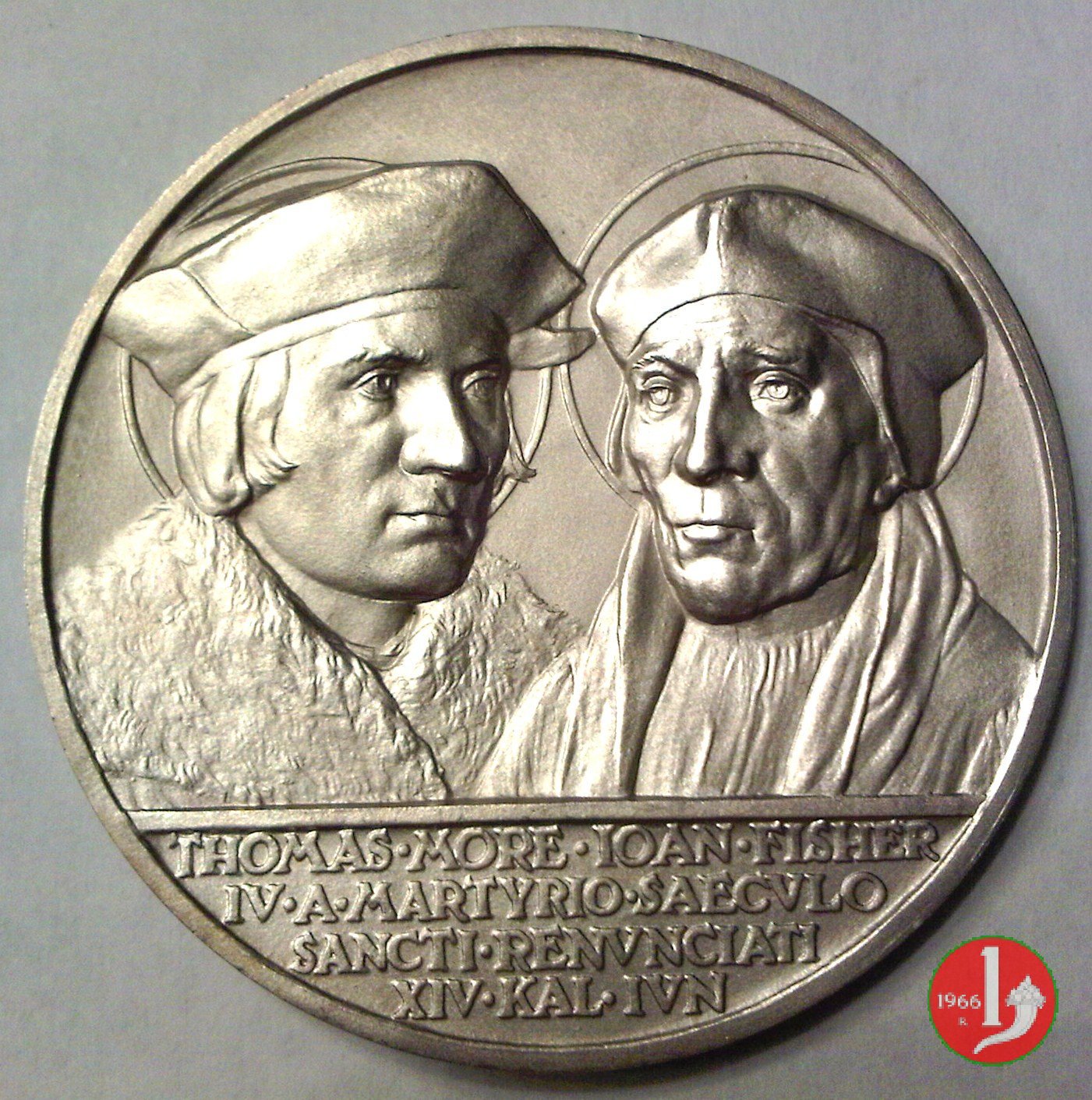 Dritto: THOMAS • MORE • IOANNES • FISHER • INTER • COELESTES = * MCMXXXV *