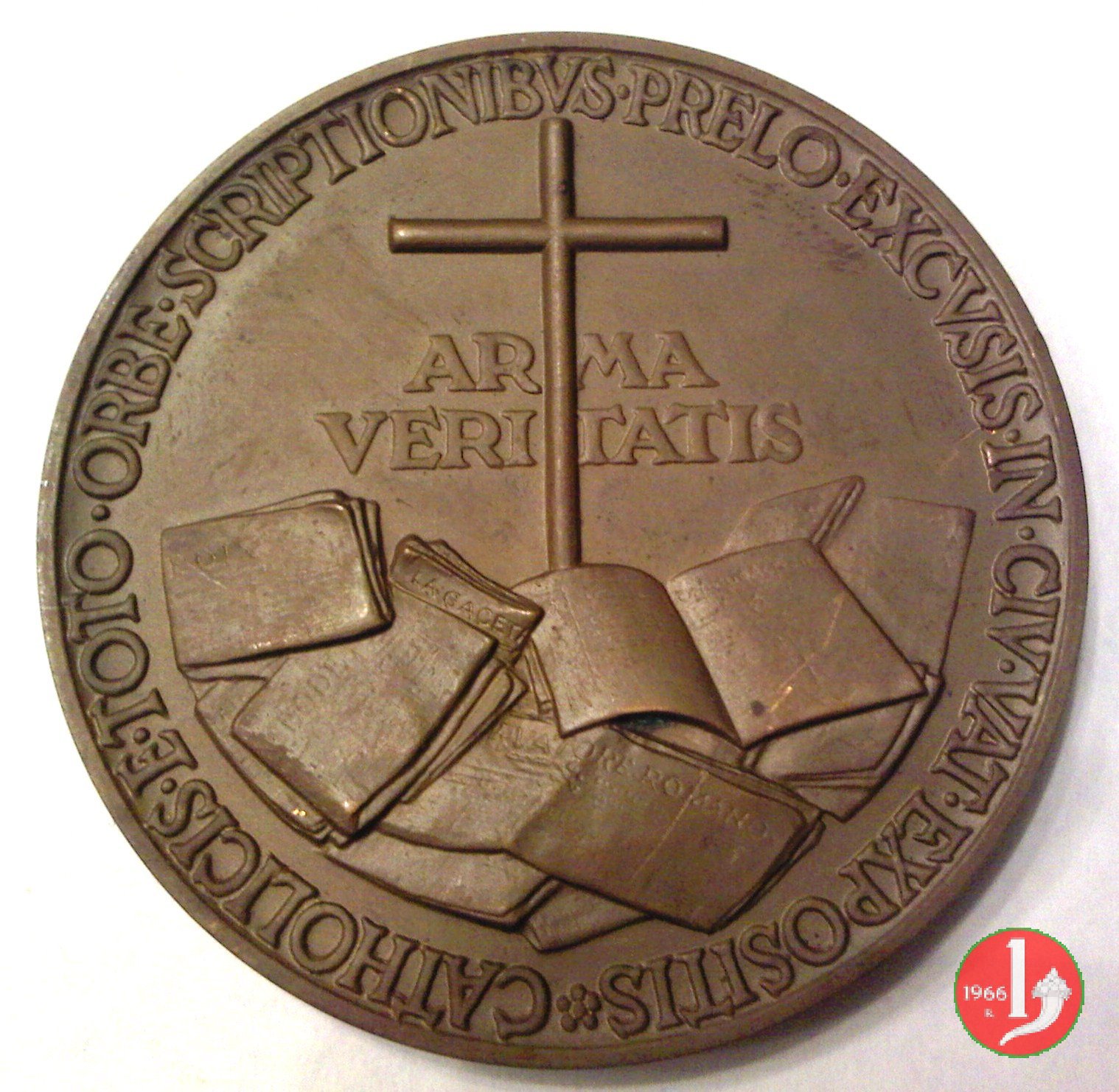 Esposizione Stampa Cattolica Mondiale -CM282 Dritto: PIVS • XI • PONTIFEX • MAXIMVS • A • XV busto a dx con berretto, mozzetta e stola sotto: MISTRVZZI Croce sovrasta libri e giornali sparsi ai lati della croce: AR _ MA = VERI _ TATIS | |
