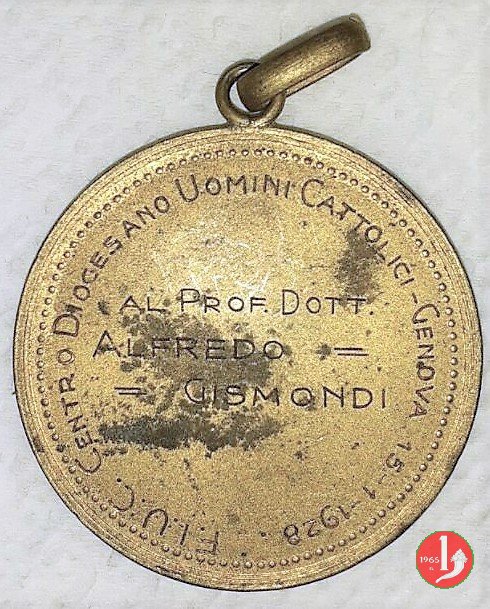 F.I.U.C. Genova 15-01-1928 Obverse: PIVS • XI • _ PONT • MAX • busto a dx con zucchetto, mozzetta d'ermellino e stola nel campo: dedica |